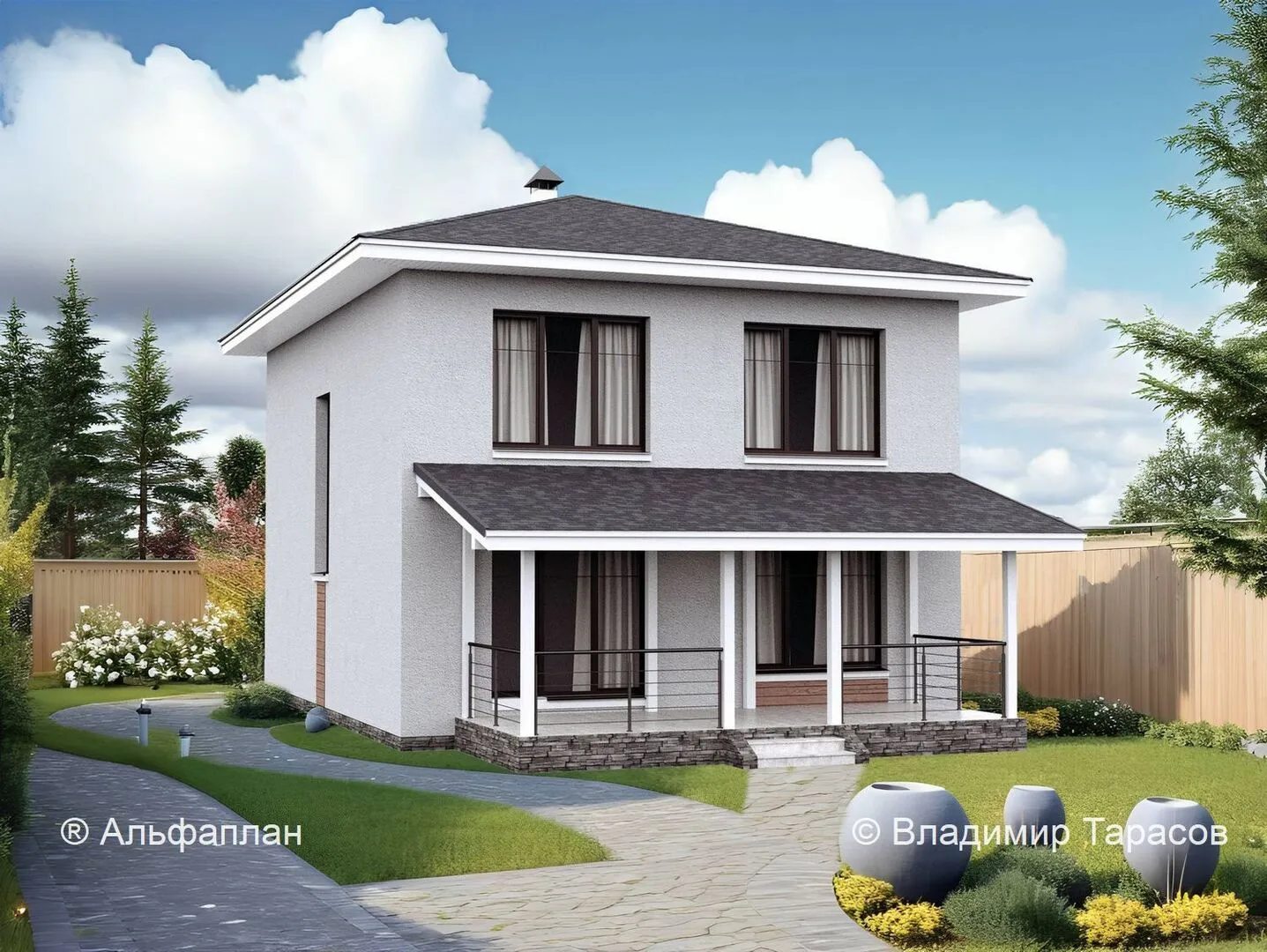1006Е - дом со вторым светом, с террасой, в скандинавском стиле