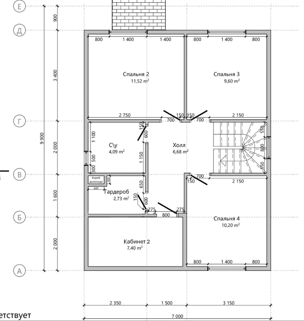 Толщина внутренних перегородок