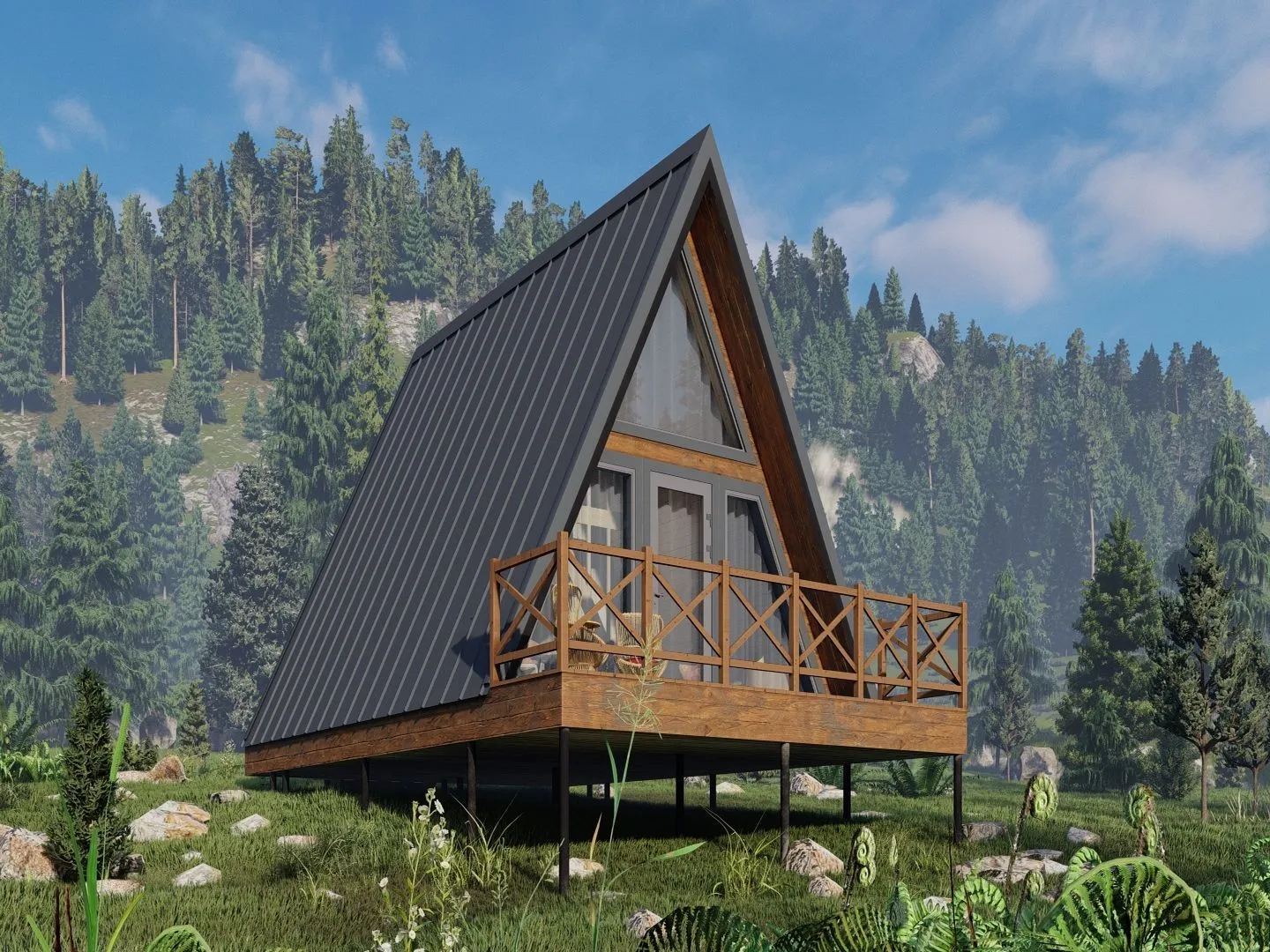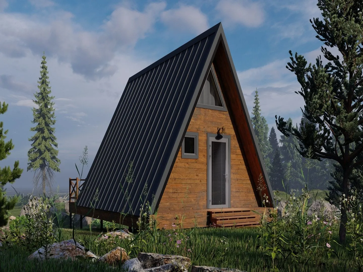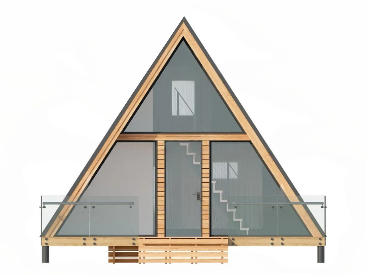 **A‑frame LN‑244** – это дом, в котором каждый уголок вдохновляет и согревает. Его архитектура, выполненная в стиле американского и канадского логга, привносит в пространство естественную простоту и тепло. Двухэтажный дом располаг­ается на приподнятой площадке, где каждая комната открывается на обширную террасу, даря возможность наслаждаться панорамными видами и свежим воздухом. У стены дома – прочный деревянный каркас, который не только обеспечивает надежную защиту от непогоды, но и создаёт ощущение уюта и гармонии с природой. Двускатная крыша подчёркивает лаконичность линии арочной формы, а наличие террасы позволяет провести в любой момент времени вечер в окружении живописных пейзажей. Благодаря продуманной внутренней планировке, в доме предусмотрено достаточно места для комфортного проживания круглый год: уютные спальни, светлые ванные комнаты и просторная кухня с панорамными окнами, открывающими вид на природу. Если вы цените аутентичность и функциональность, A‑frame LN‑244 – идеальный выбор. Он соединяет в себе традиционный стиль с новейшими удобствами, создавая идеальное место для семейной жизни, отдыха и вдохновения. В этом доме вы ощутите гармонию с природой и уверенность в каждом дне, ведь всё сделано так, чтобы вам было легко и комфортно жить.*