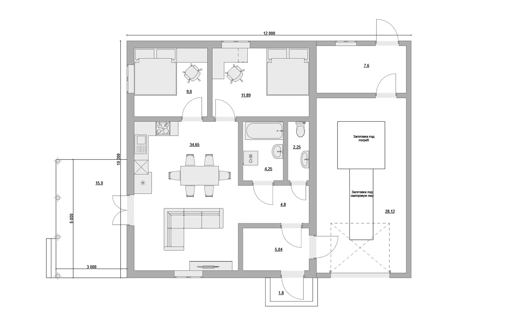 Одноэтажный дом по проекту № 9