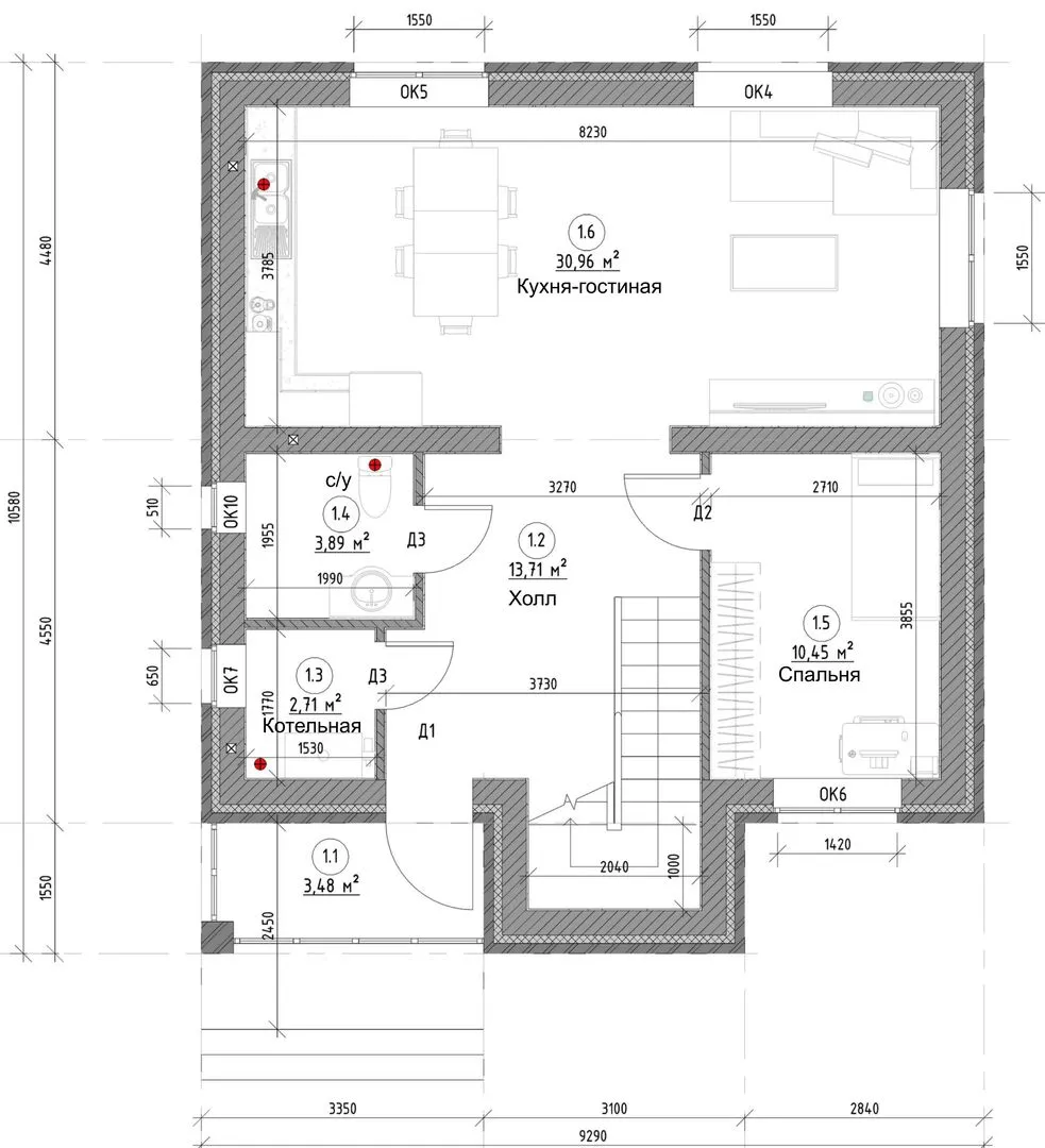 Совмещенная кухня-гостиная