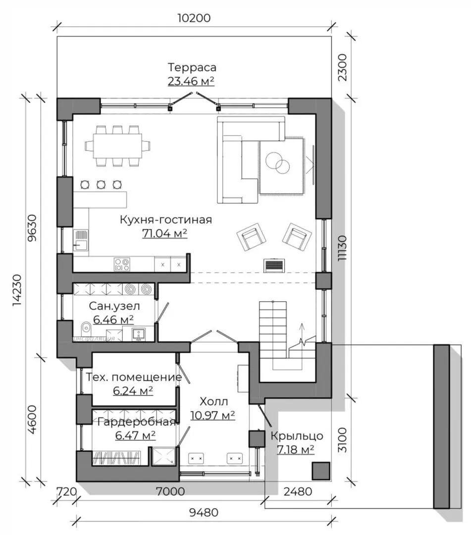 Совмещенная кухня-гостиная