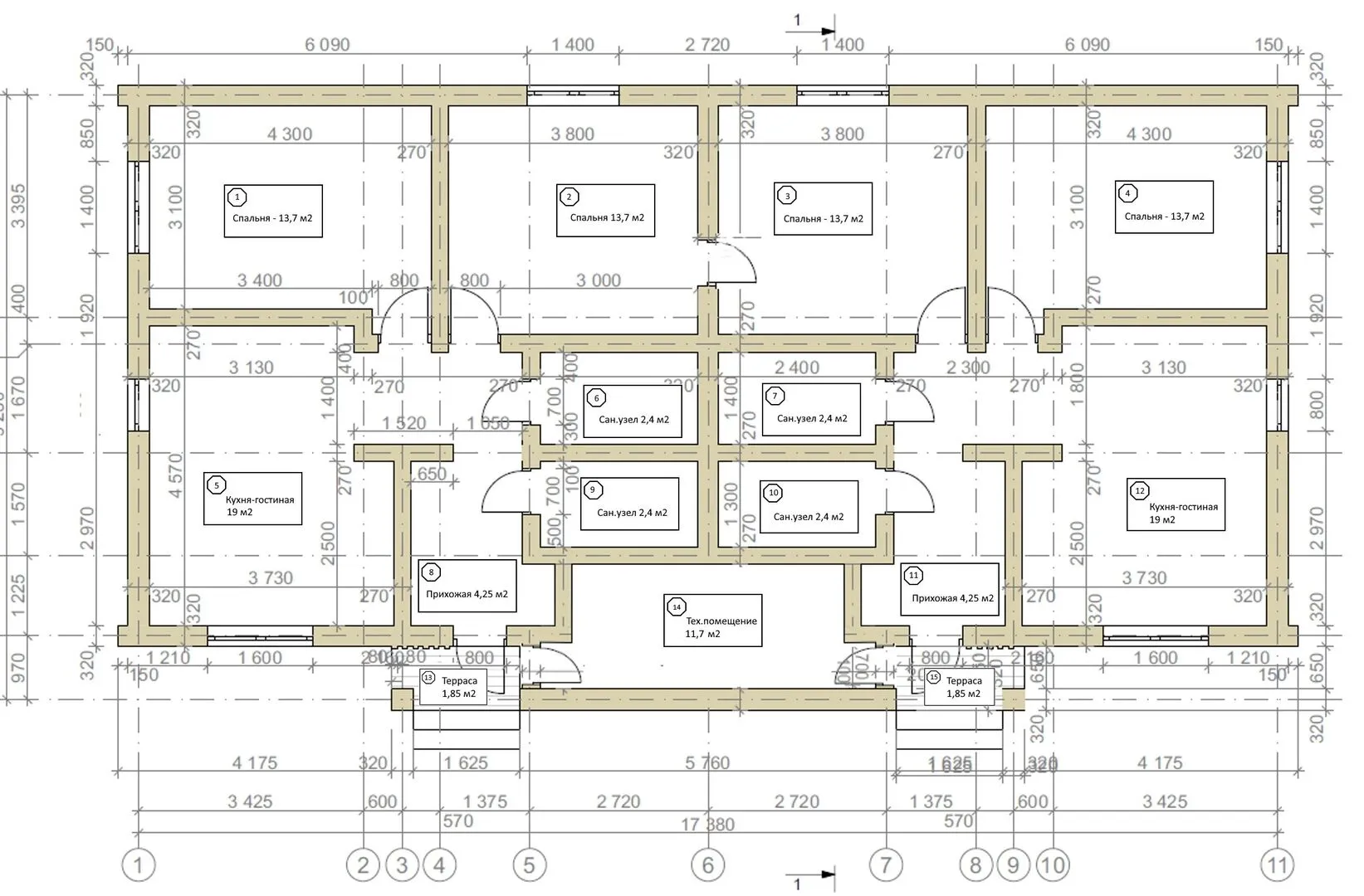 Толщина внутренних перегородок