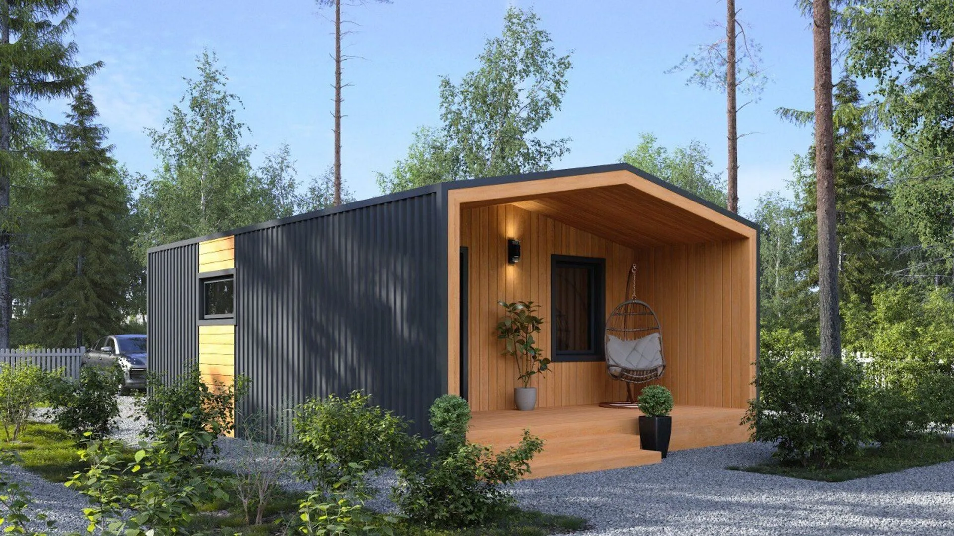 **Барн 34 – ваш уютный уголок в стиле современной сельской простоты** В этом очаровательном одноэтажном доме вы почувствуете настоящий дух «barn‑хауса»: высокие, открытые потолки, массивная деревянная каркасная конструкция и обрамленные двойными кровлями, создающие ощущение простора и теплоты. Тёплые деревянные стены, пропитанные светом летних и зимних дней, мгновенно создают ощущение уюта и домашнего очага. Простая, но элегантная архитектура подчеркивает связь с природой, а открытые задние стены и большие окна позволяют солнцу проносить тепло и свежий воздух в каждый уголок вашего дома. Небольшая терраса, уединённая от городской суеты, открывает вид на долину или лес, даря уникальную возможность наслаждаться природой в любое время года. Пространство внутри легко адаптируется под ваши потребности: кухня-столовая, уютная гостиная, спальни и удобные санузлы – всё в гармонии с природным материалом и минималистичным дизайном. Здесь отсутствие лестниц и подъёмных препятствий делает каждый день беззаботным, а круглогодичная пригодность дома обеспечит комфорт даже в самые холодные дни. Доверьтесь Барн 34 – это не просто проживание, а приглашение к жизни в гармонии с природой. Наслаждайтесь тихими вечерами у камина, семейными встречами на уютном балконе, а утром просыпайтесь, вдохновляясь свежестью природы. Мы приглашаем вас открыть для себя новый уровень простоты и уюта – дом, где каждая деталь создаёт неповторимую атмосферу домашнего благополучия.