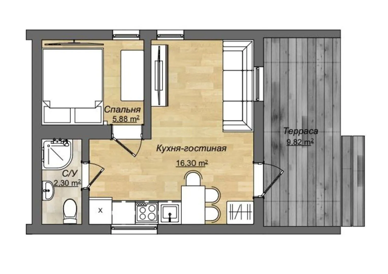 Площадь дома 34 м2
