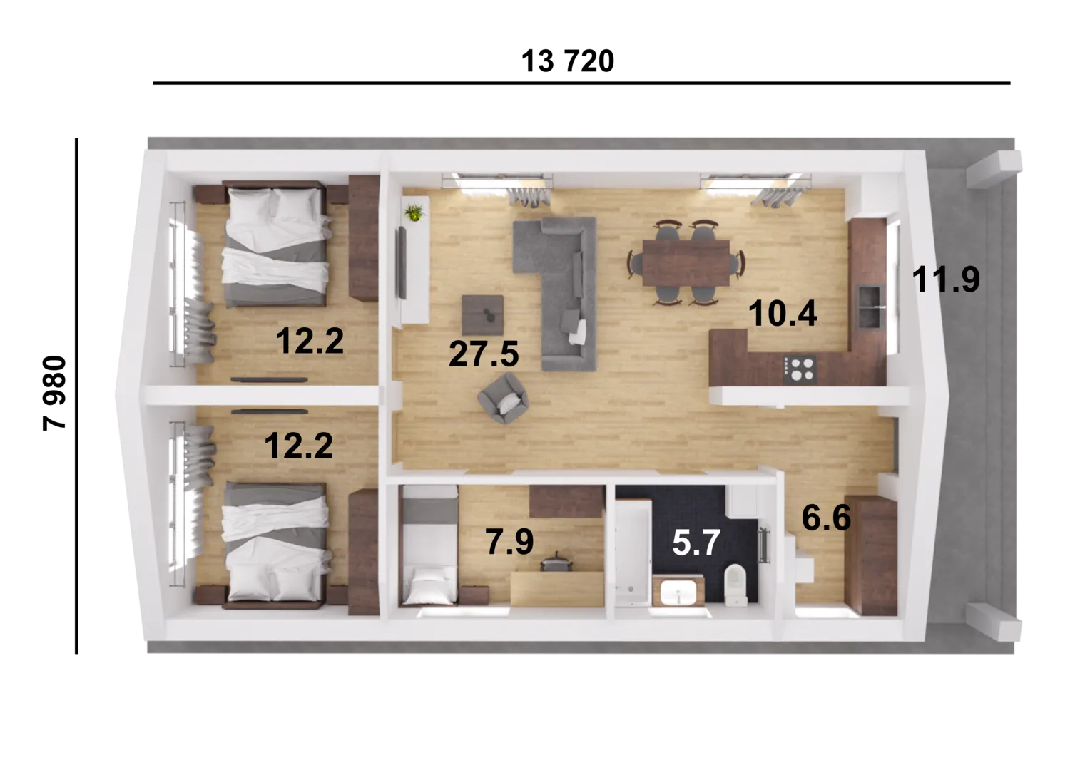 Бавария 95 – это уютное одноэтажное убежище, спроектированное в чистых и лаконичных линиях скандинавского стиля. В каждом уголке чувствуется открытость и простота: свет проникает в просторные комнаты, а простые детали подчёркивают элегантность интерьера. Дом создан для круглогодичного проживания: тепло и комфорт остаются неизменными даже в самые холодные дни, а надёжная гable-кофировка обеспечивает надёжную защиту от непогоды. Экономичность встречается с эстетикой: внешние стены – газобетонные блоки, которые гарантируют хорошую теплоизоляцию и долговечность, а крыша с классическим двускатным профилем добавляет традиционный шарм в сочетании со современной технологией. Вместо балконов и лоджий здесь предусмотрена просторная терраса, идеальная для семейных вечеров и летних барбекю. Уютный дворовой уголок можно оформить по своему вкусу, создавая место для отдыха и вдохновения. Бавария 95 – это выбор для тех, кто ценит сочетание минимализма, практичности и высокого качества строительства. Если вы ищете дом, где каждый день будет наполнен гармонией и простыми радостями, этот проект точно для вас. Приглашаем вас открыть для себя новое измерение уюта и стиля!