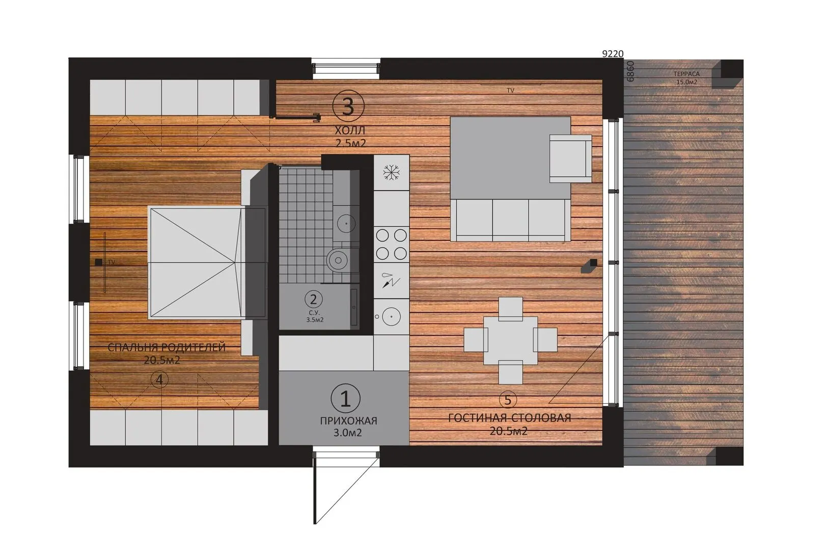 Площадь дома 65 м2