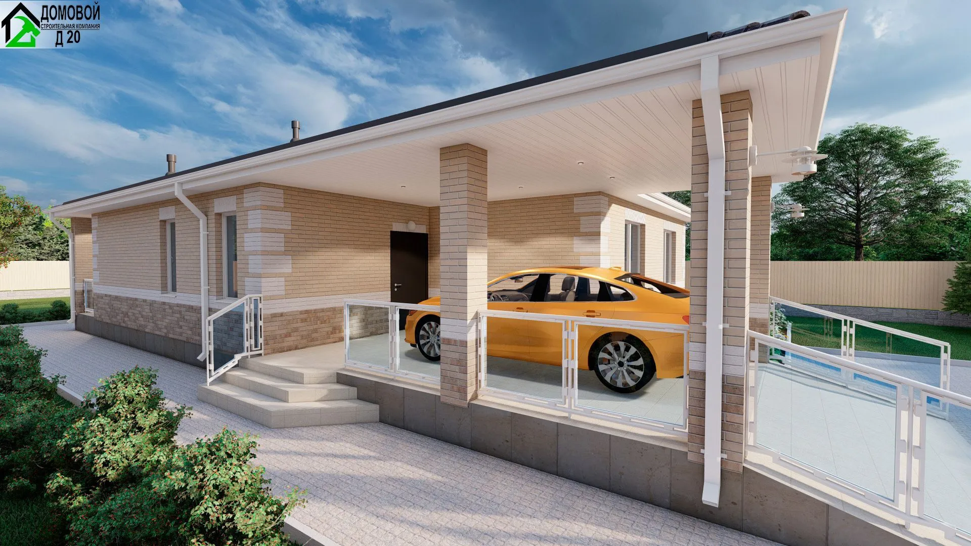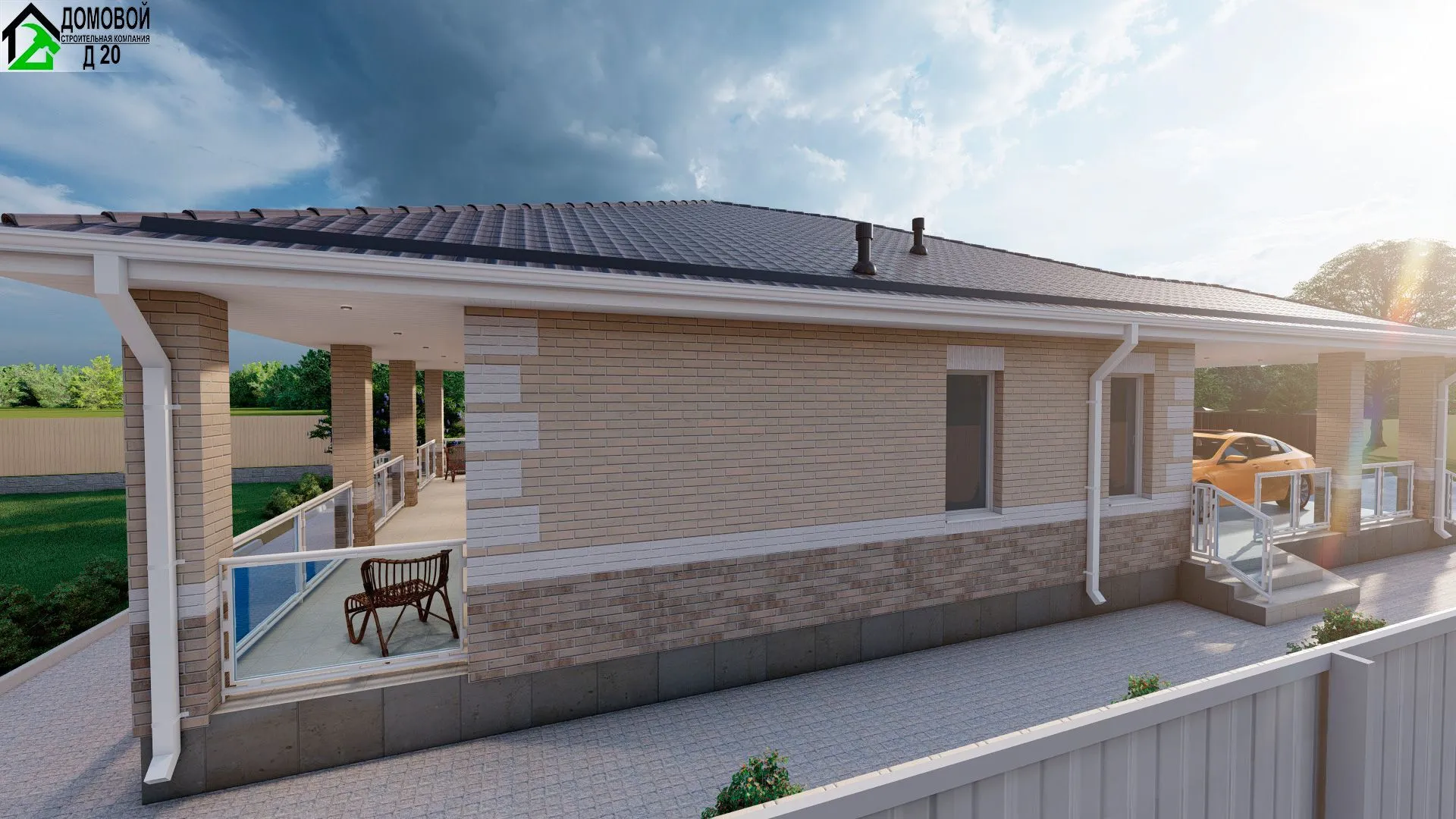Проект Каменный одноэтажный дом с террасой