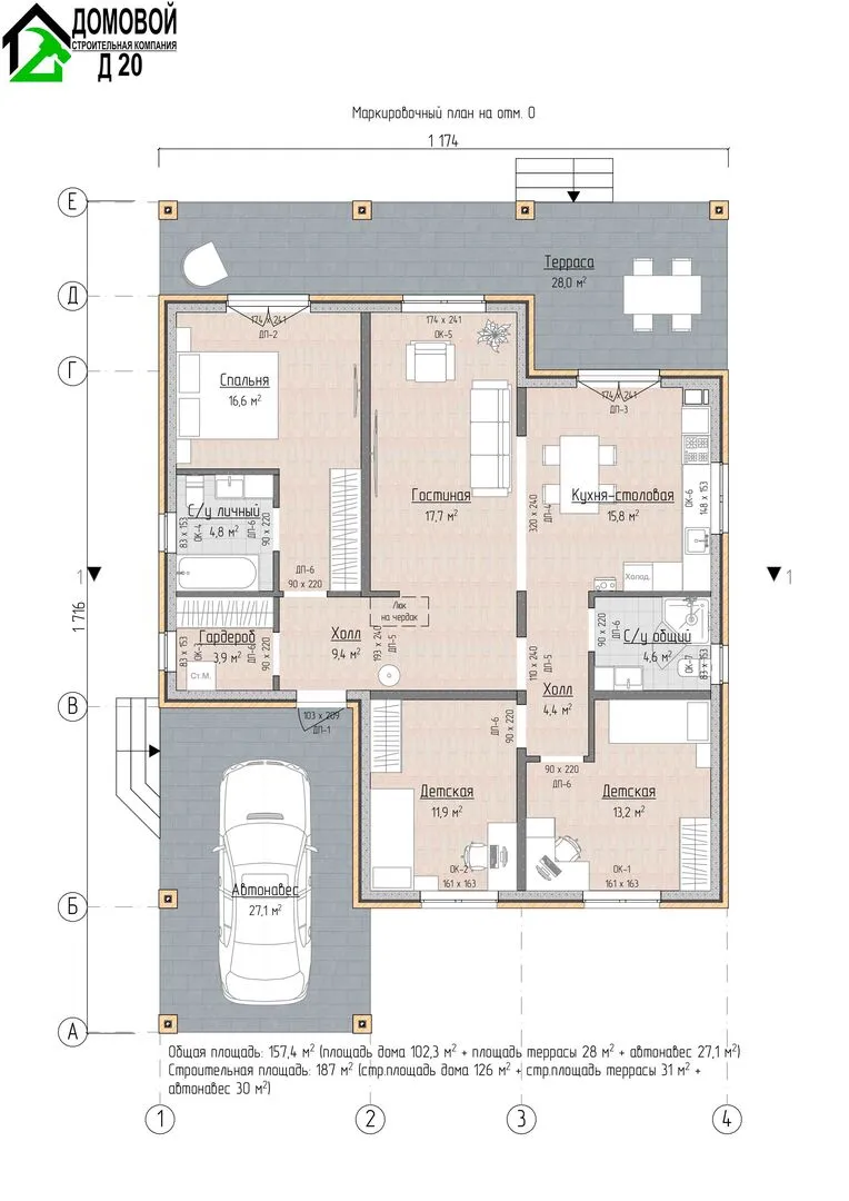 Площадь дома 157 м2