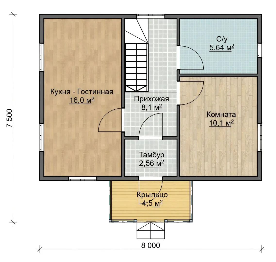 Дачник 6х8 с крыльцом
