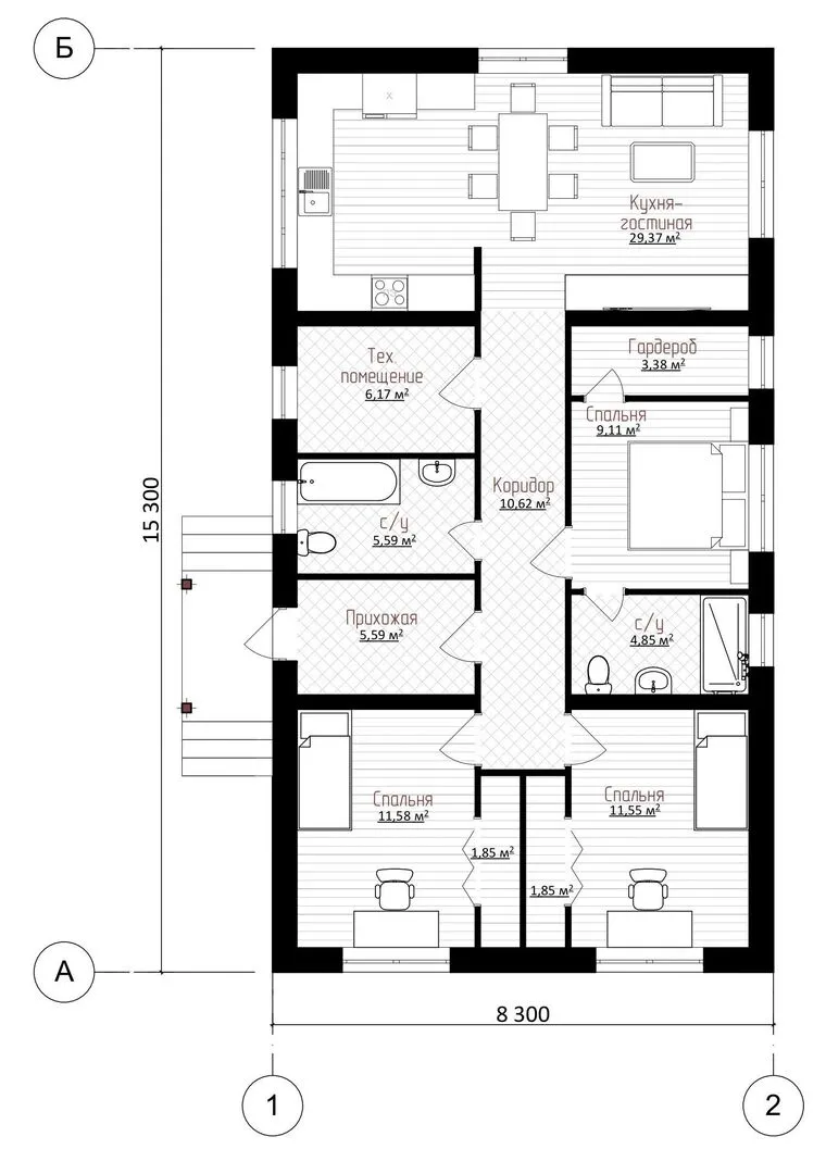 Дом 1 этаж площадь застройки 126.99 м2