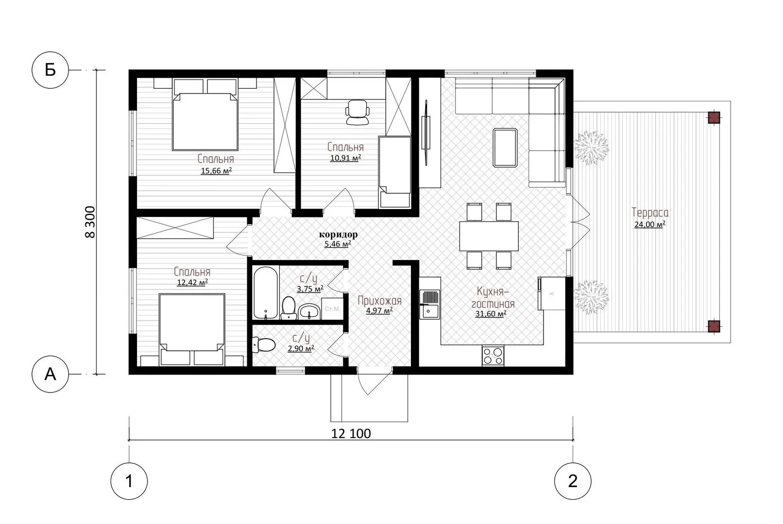 Заказать конусльтацию по:Дом 1 этаж площадь застройки 124,43 м2