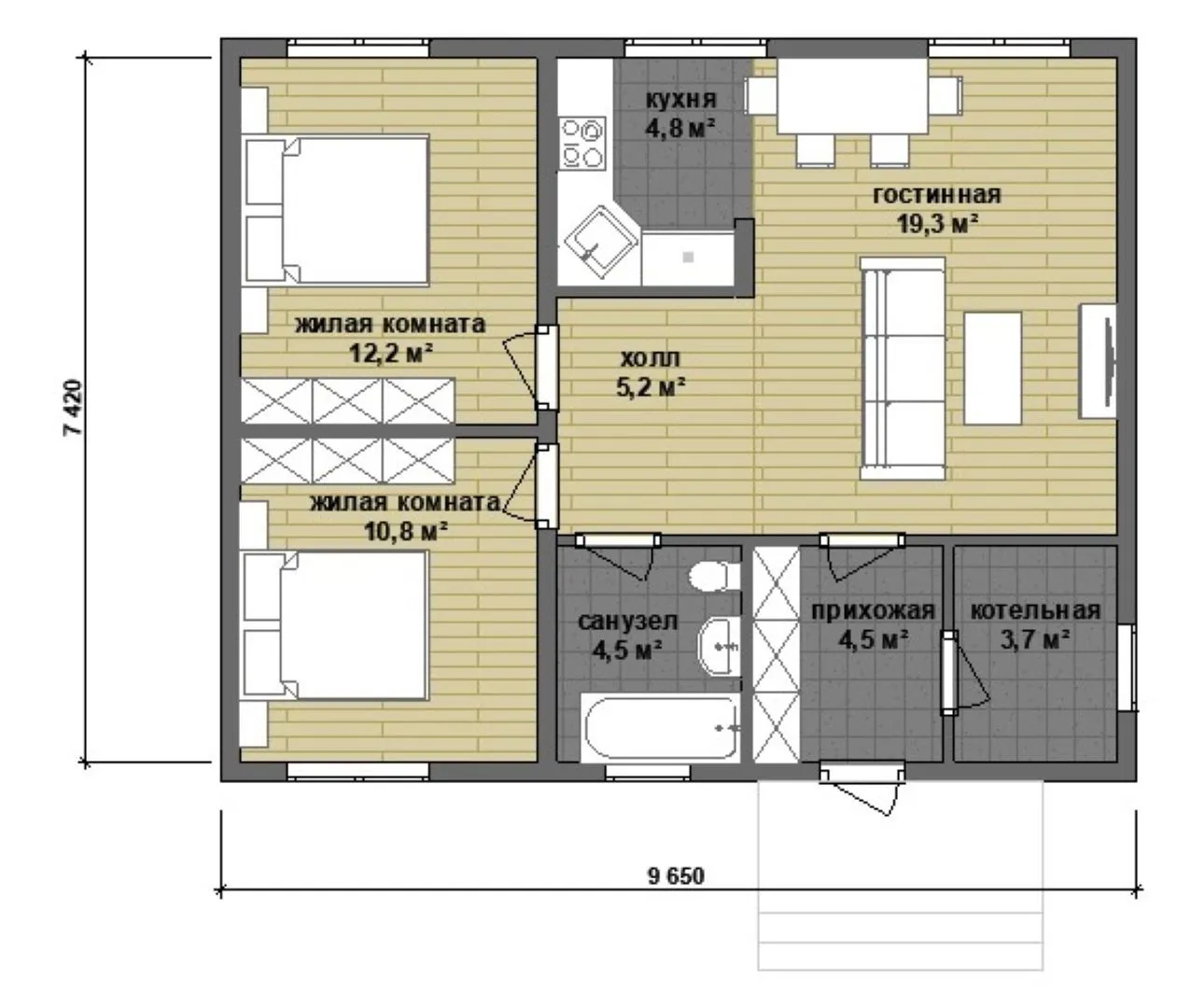 Дом 65 м2, 1 этаж