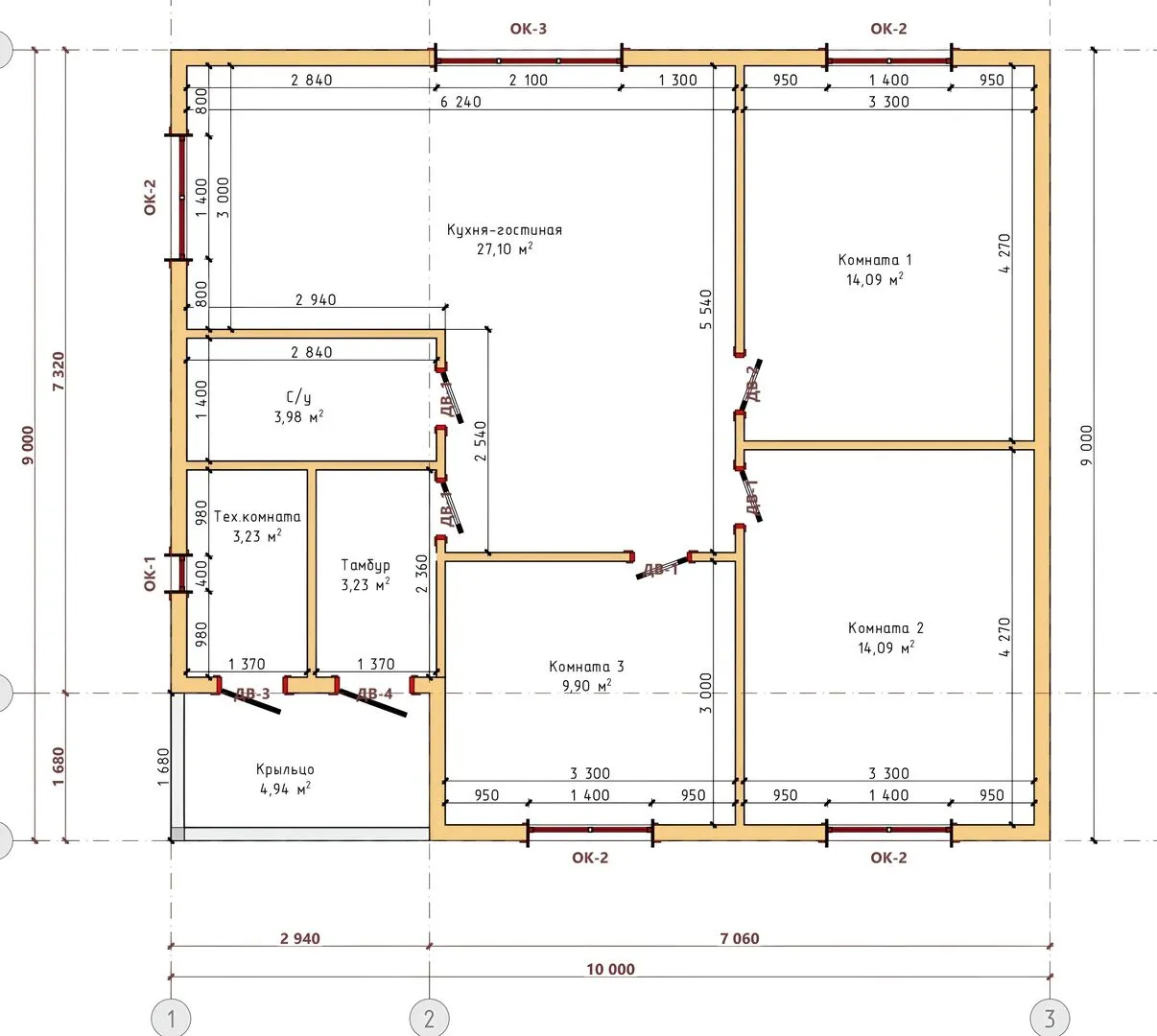 Дом 9х10 из бруса 180 ИП-5