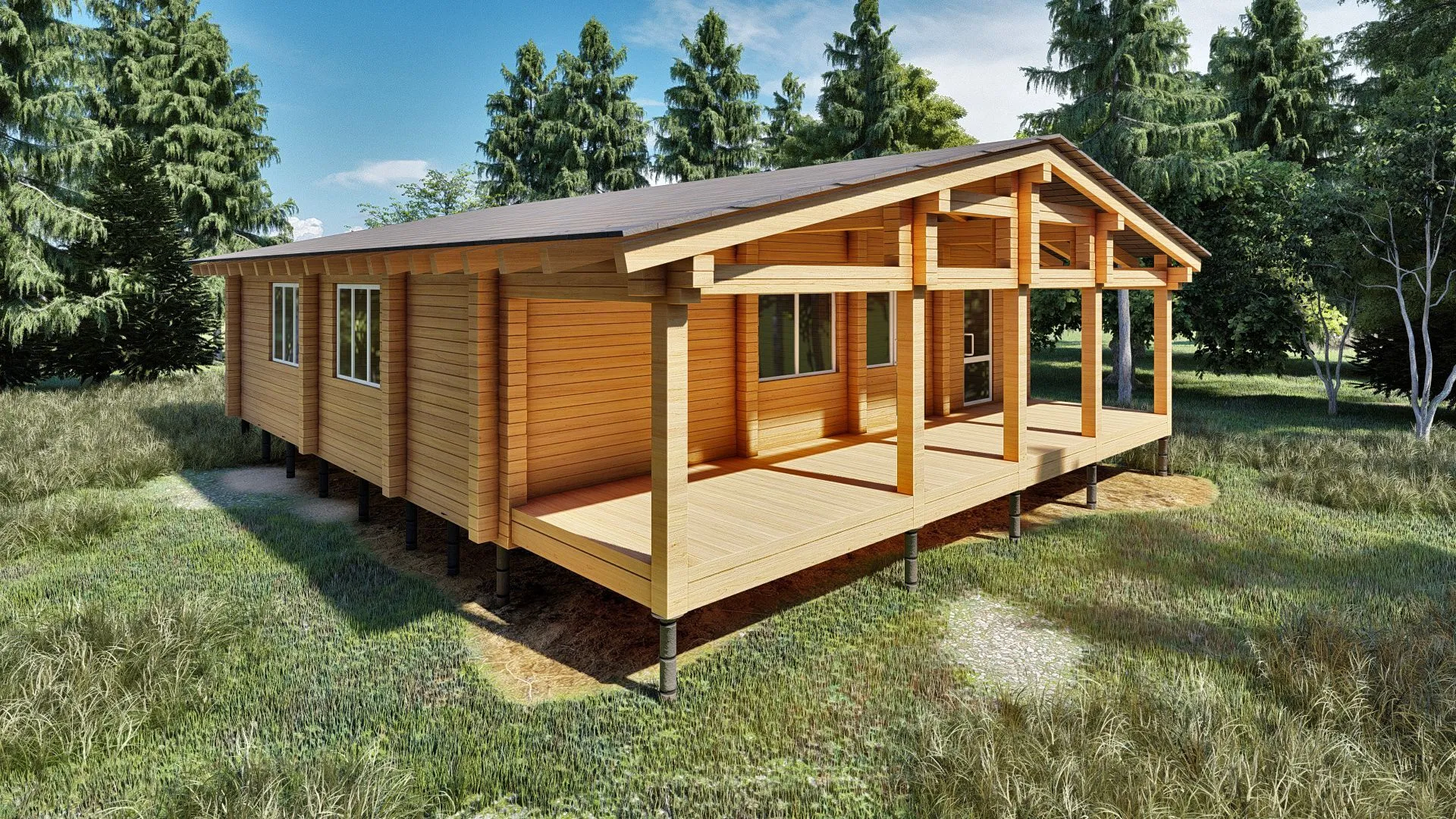 Дом из профилированного бруса "Одноэтажное шале ПБ-113"