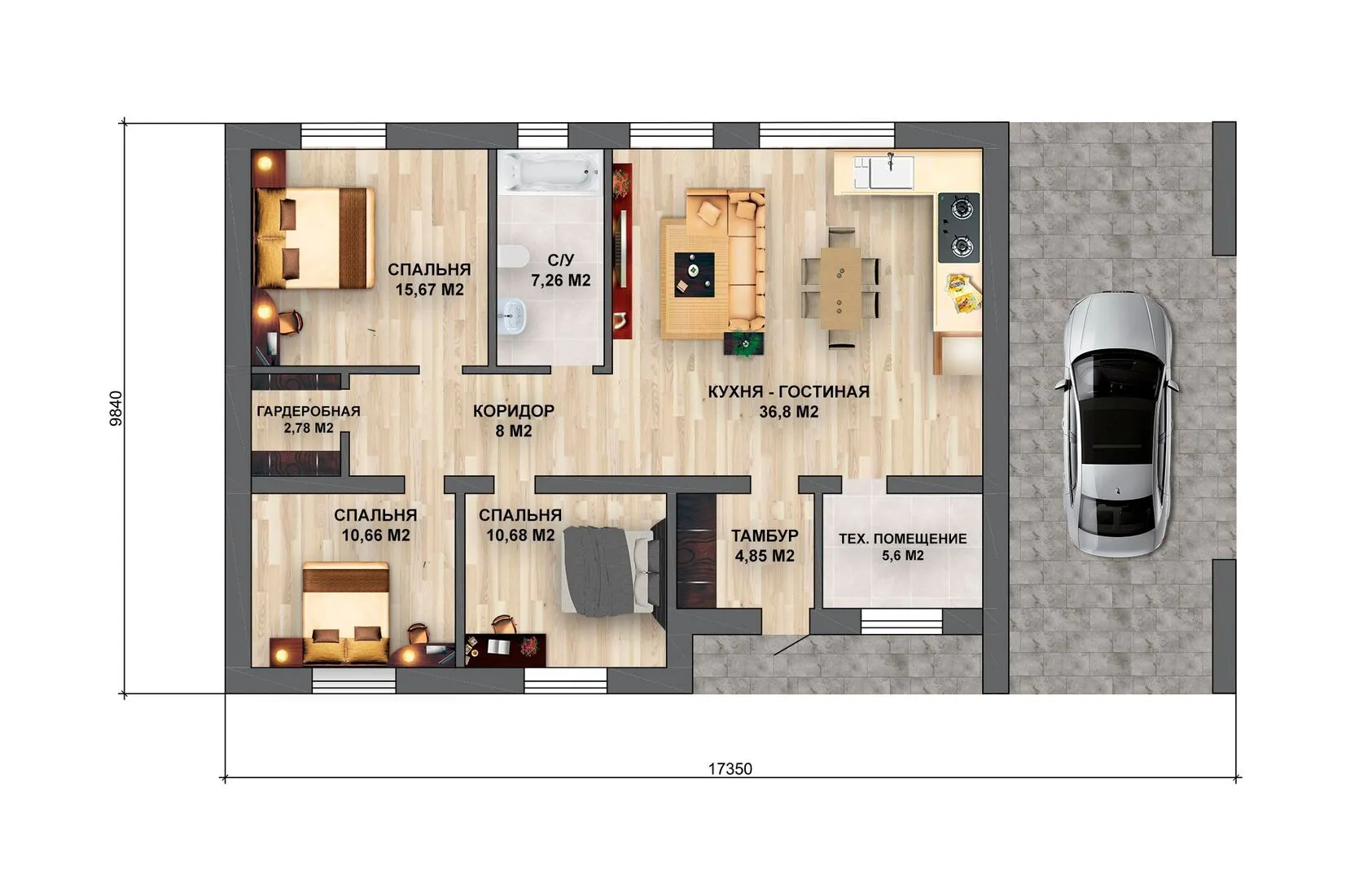 Заказать конусльтацию по:Дом с навесом 102,0 кв.м.