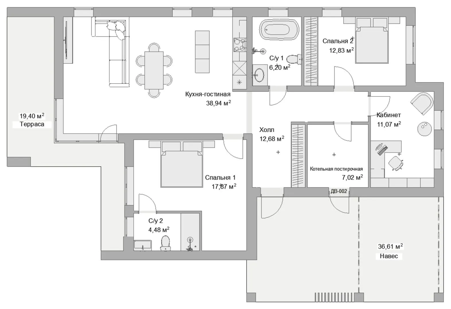 Дом в стиле Хайтек с 2 спальнями