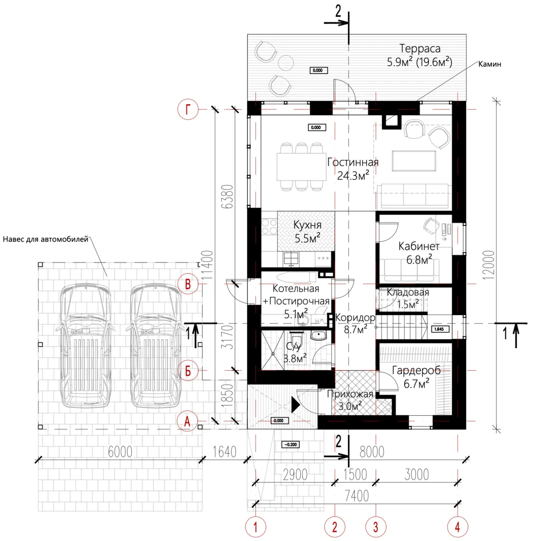 Пристроенный гараж/крытая автостоянка