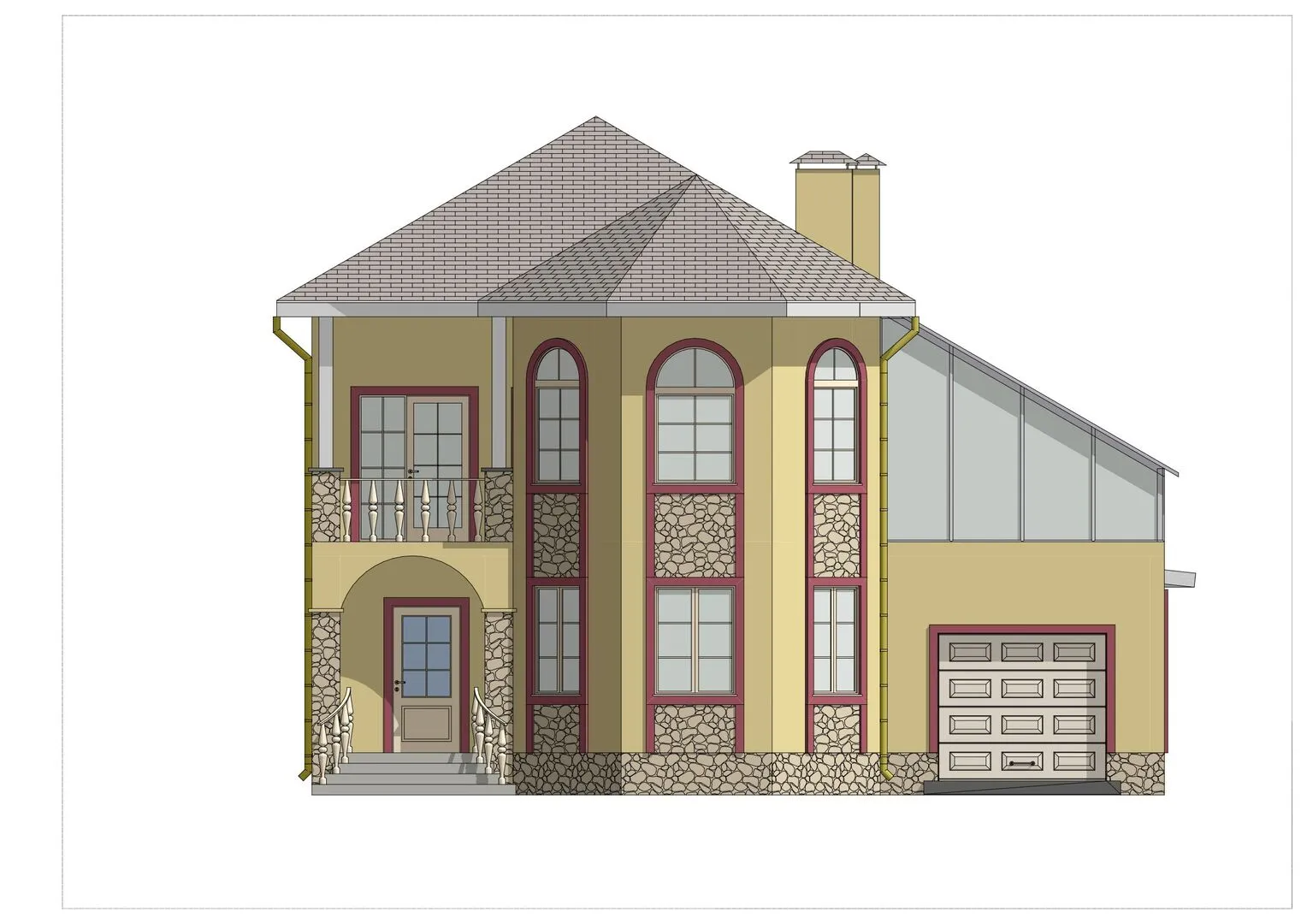 Заказать конусльтацию по:Двухэтажный дом с гаражом и зимнем садом. Проект "Династия"