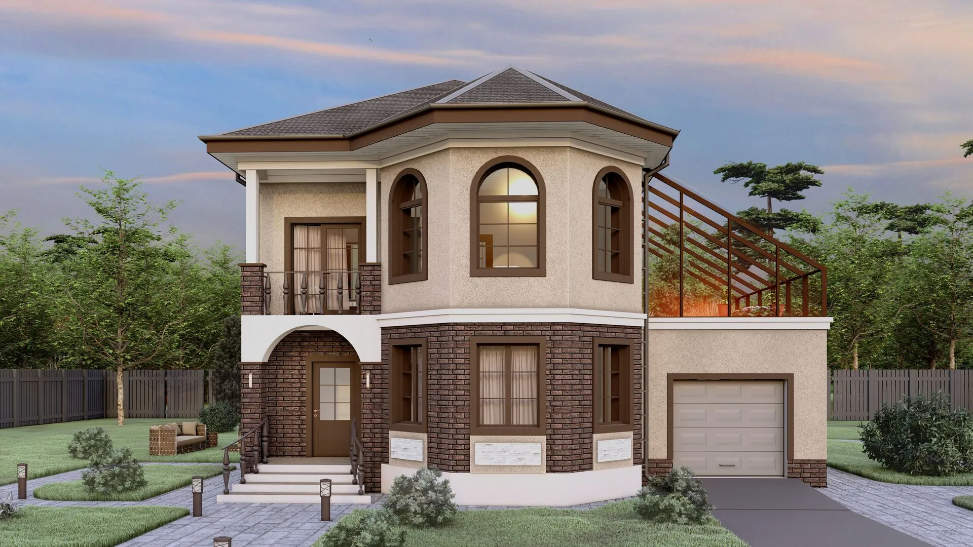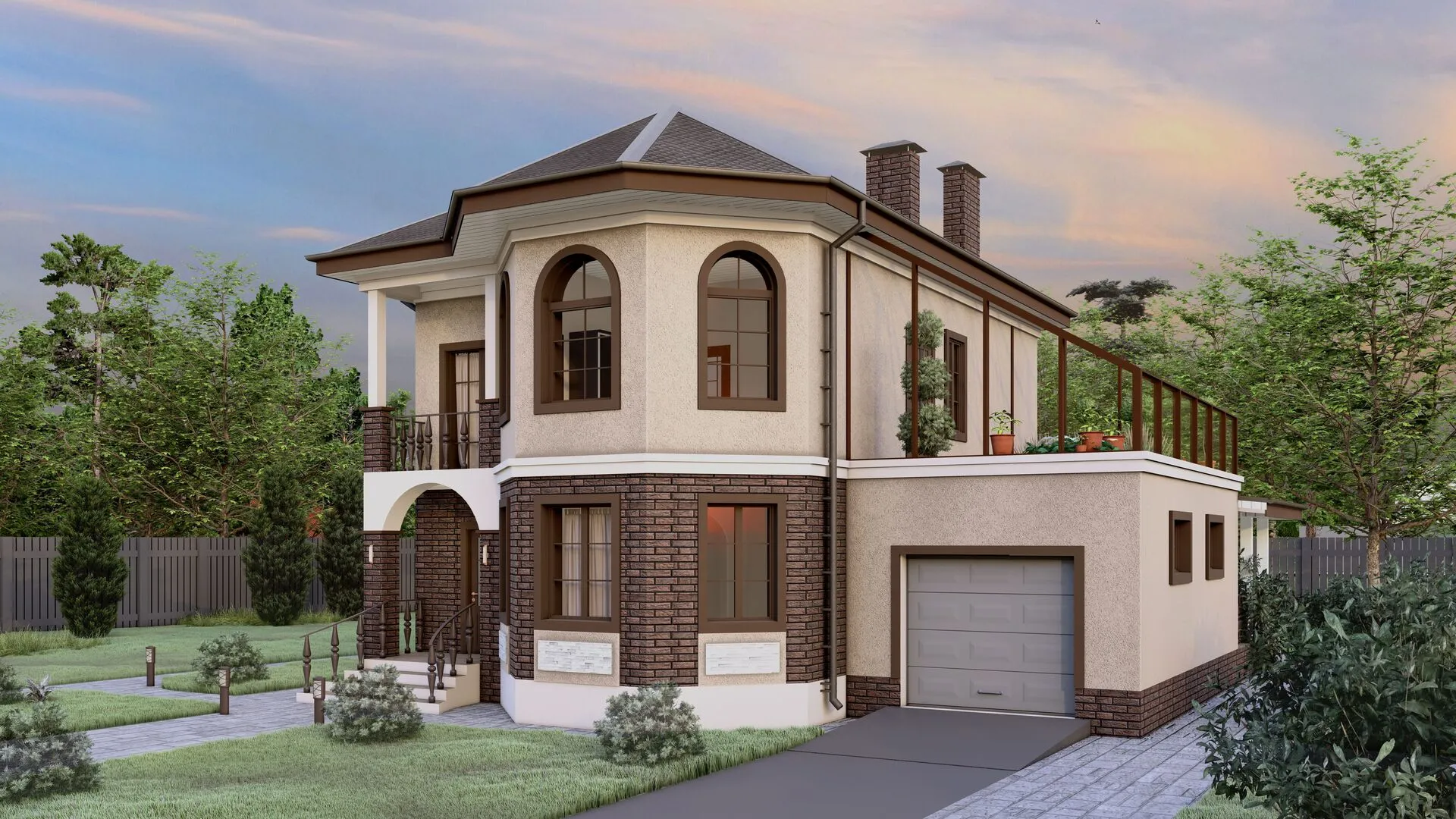 Двухэтажный дом с гаражом и зимнем садом. Проект "Династия"