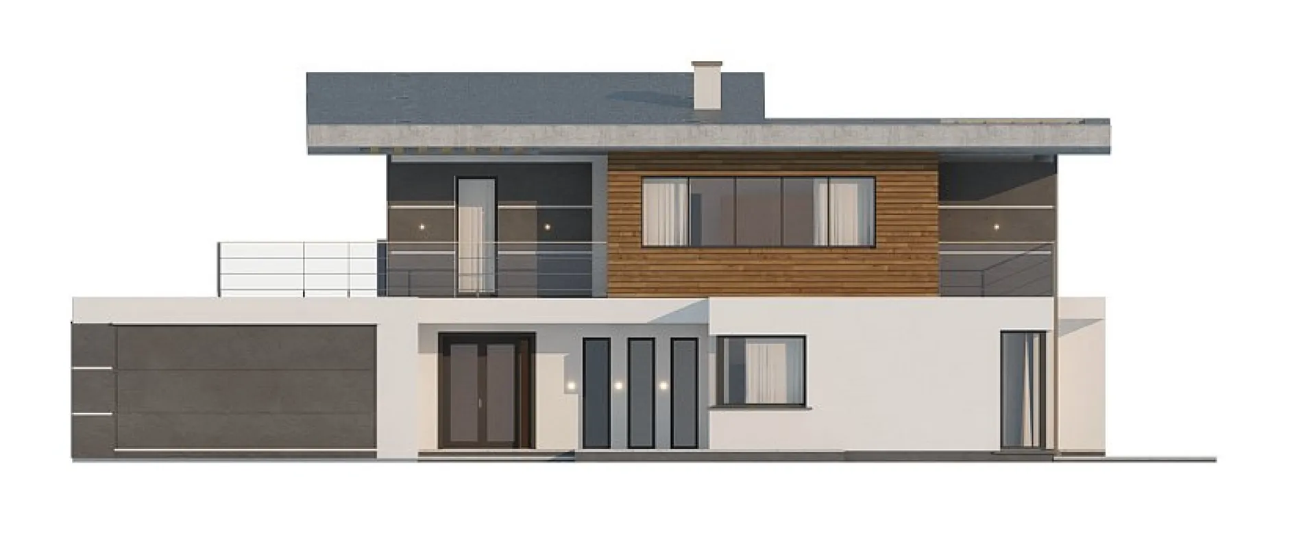 Заказать конусльтацию по:Двухэтажный дом с верхней террасой и большим гаражом S3-278 (Zx22)