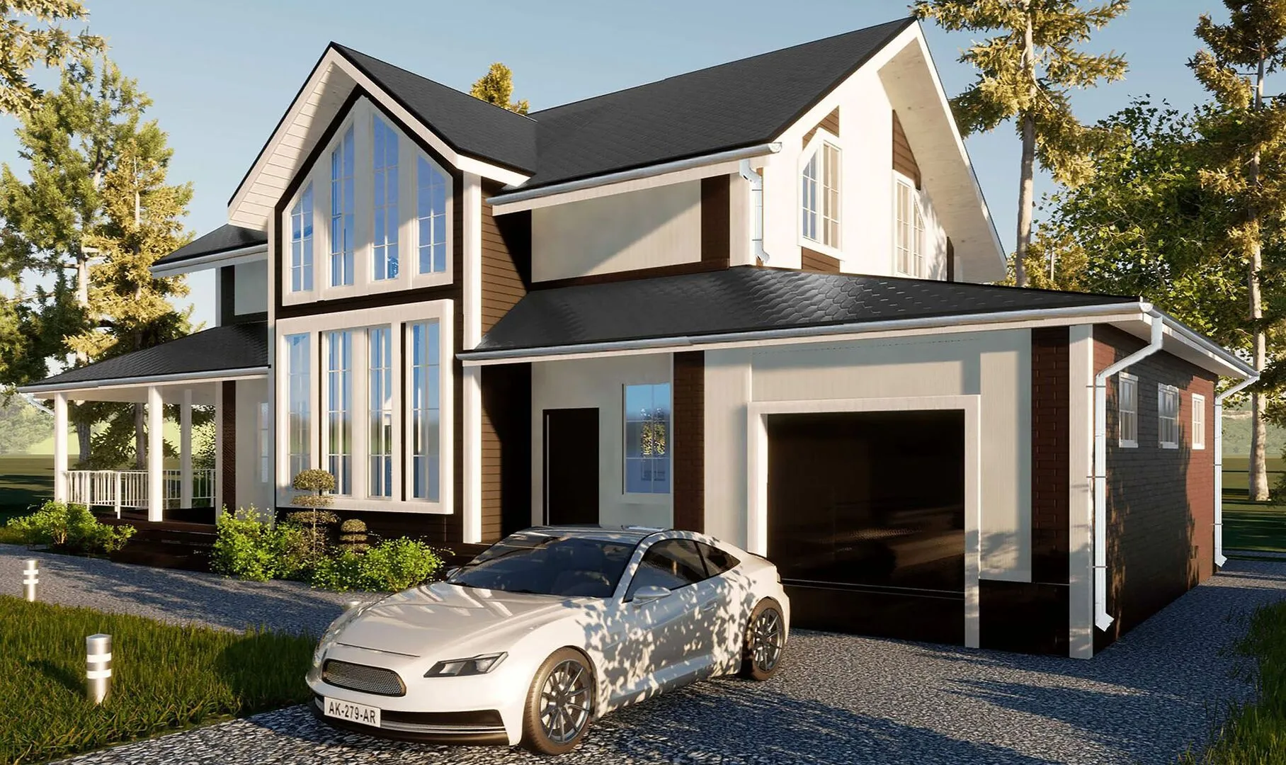 Двухэтажный дом со вторым светом, террасой и гаражом.