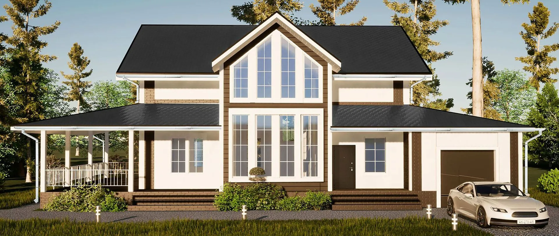 Заказать конусльтацию по:Двухэтажный дом со вторым светом, террасой и гаражом.