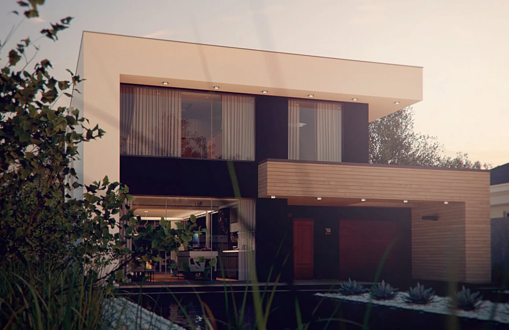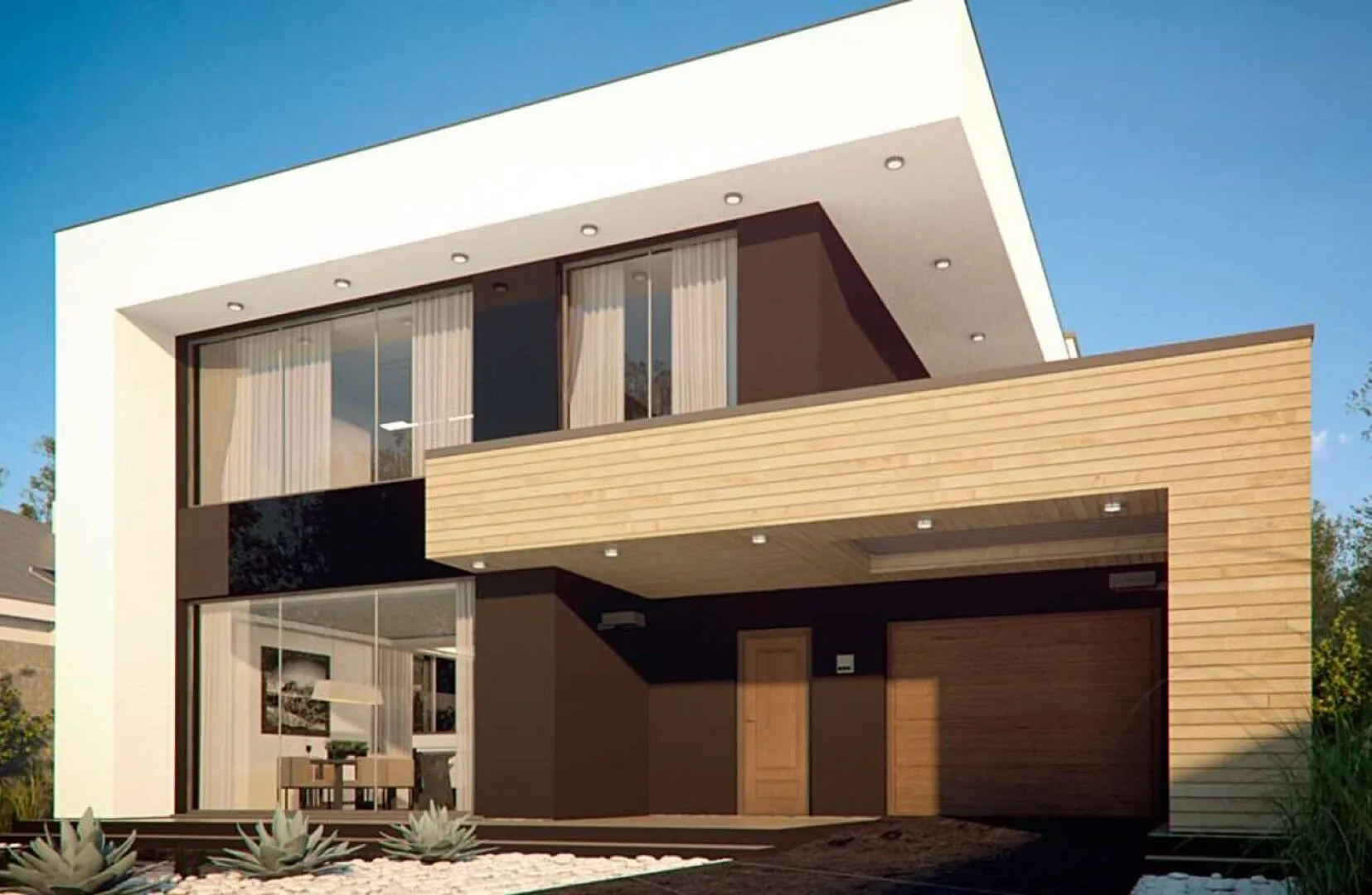 Двухэтажный дом в стиле хай-тек с цокольным этажом S3-405-1 (Zx123 P)
