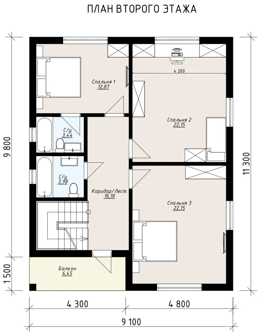 Двухэтажный коттедж С162