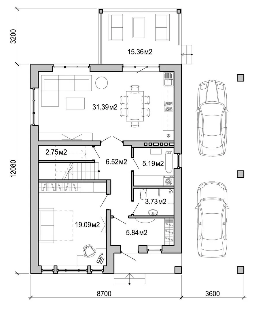 Пристроенный гараж/крытая автостоянка