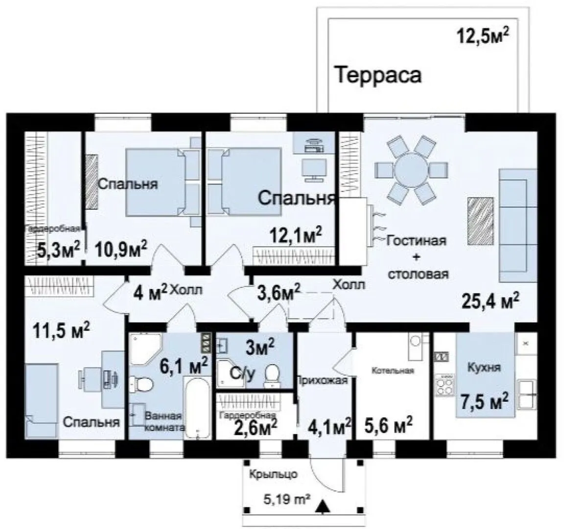 Элегантный одноэтажный дом для семьи с двумя детьми S3-104-1 (Z369 D)