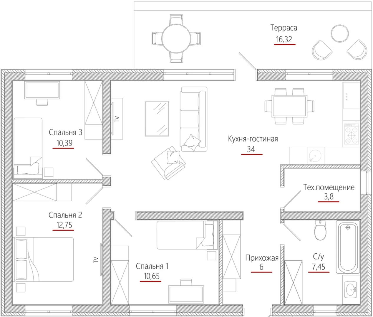 Совмещенная кухня-гостиная
