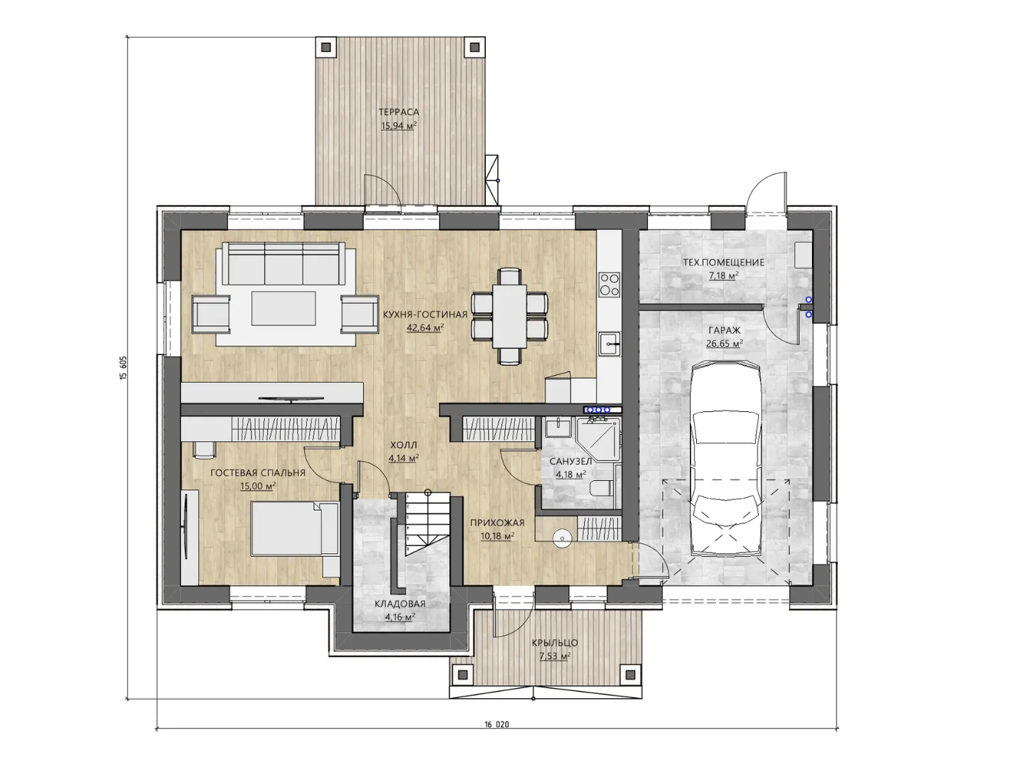 Пристроенный гараж/крытая автостоянка