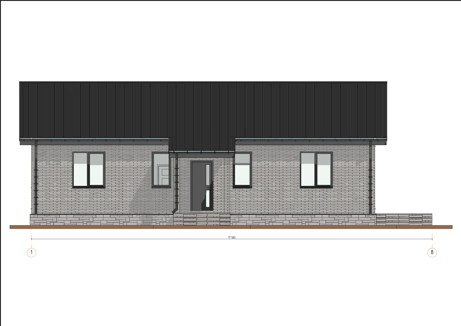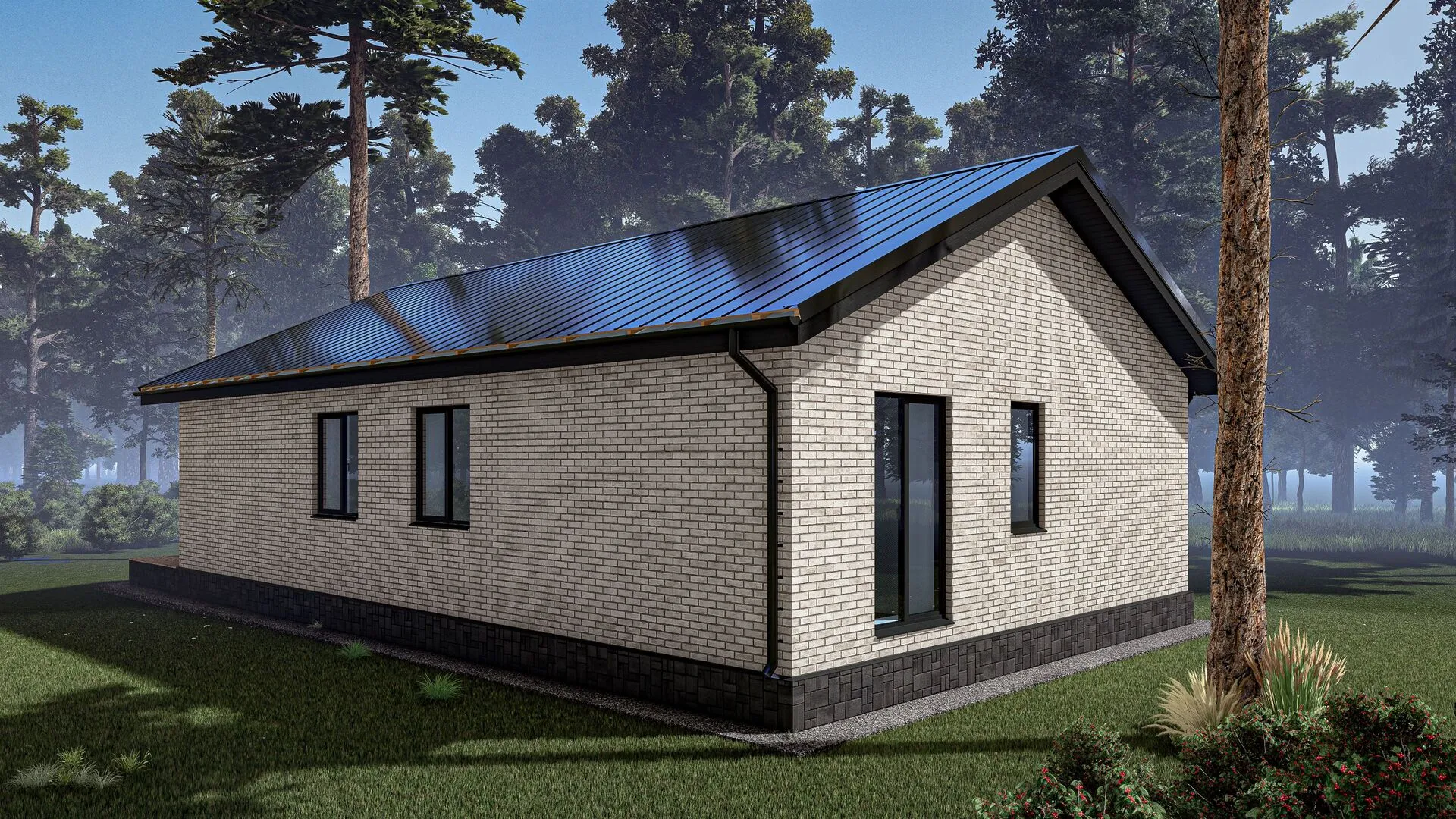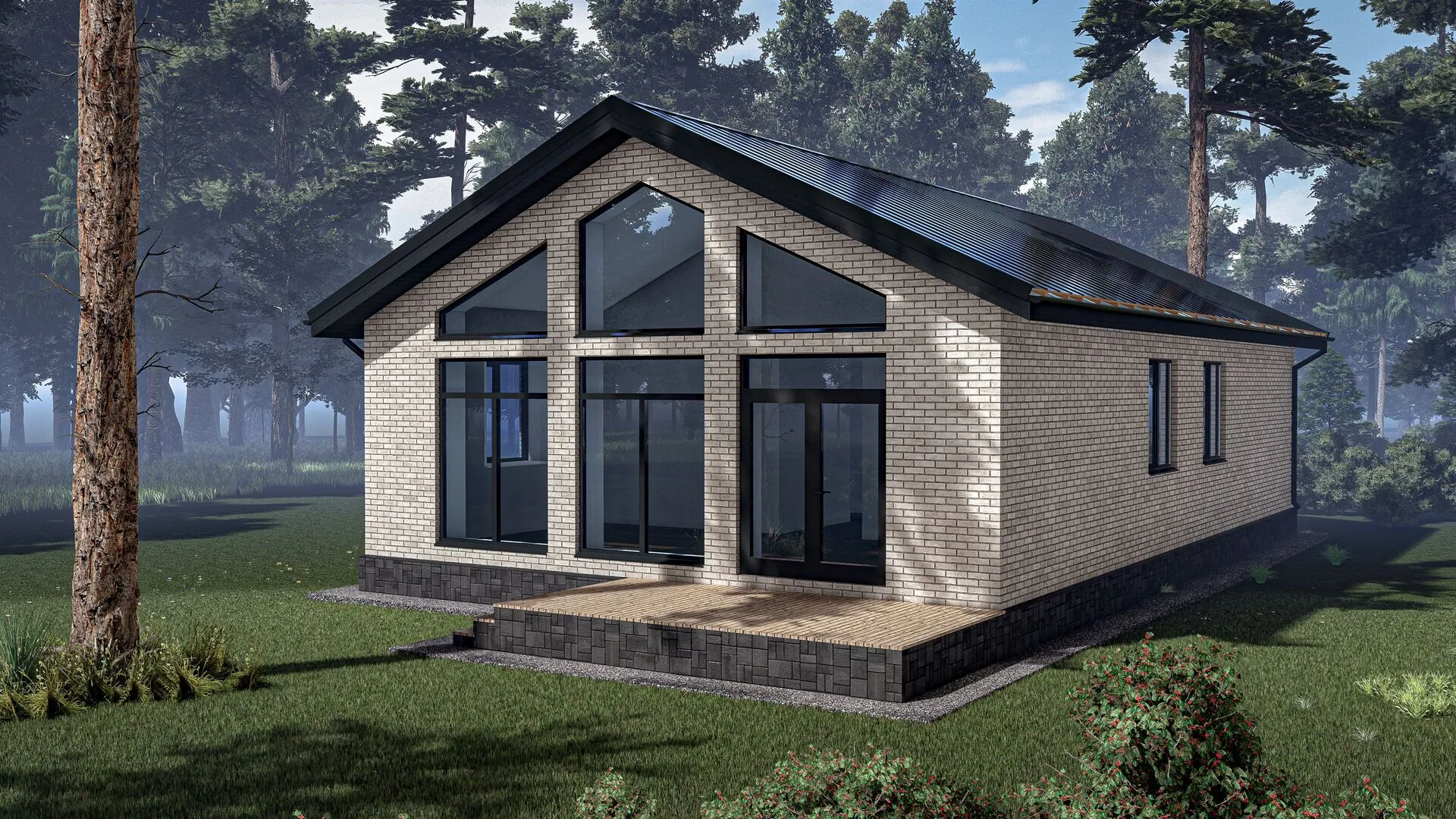 Кирпичный дом с панорамными окнами