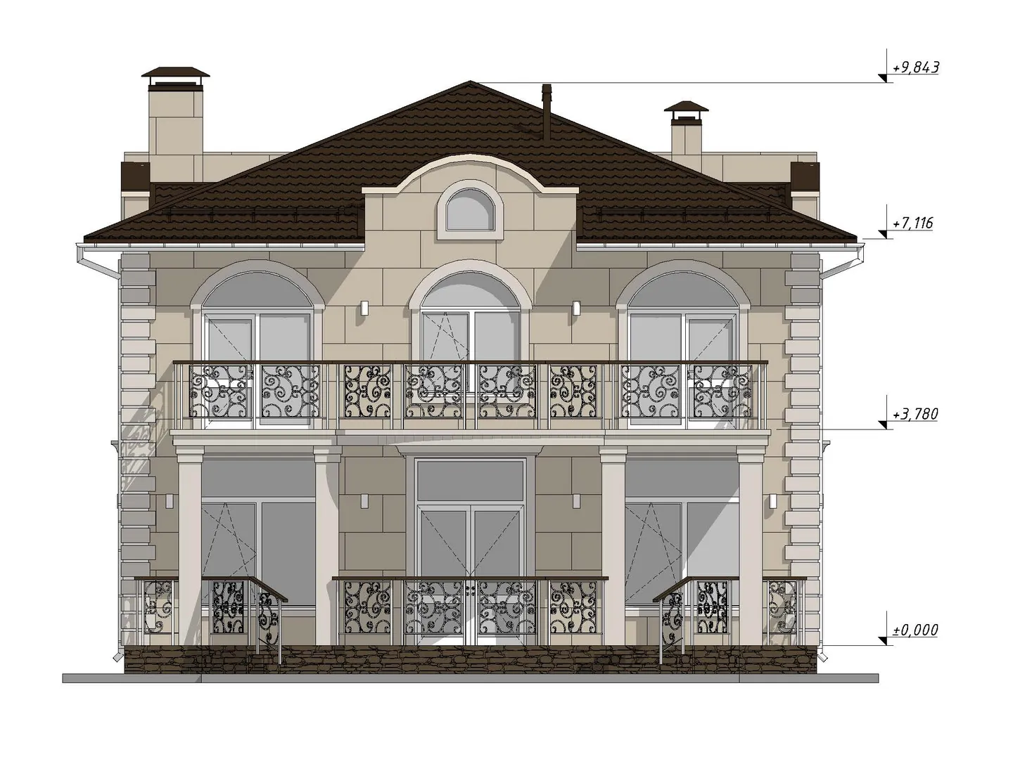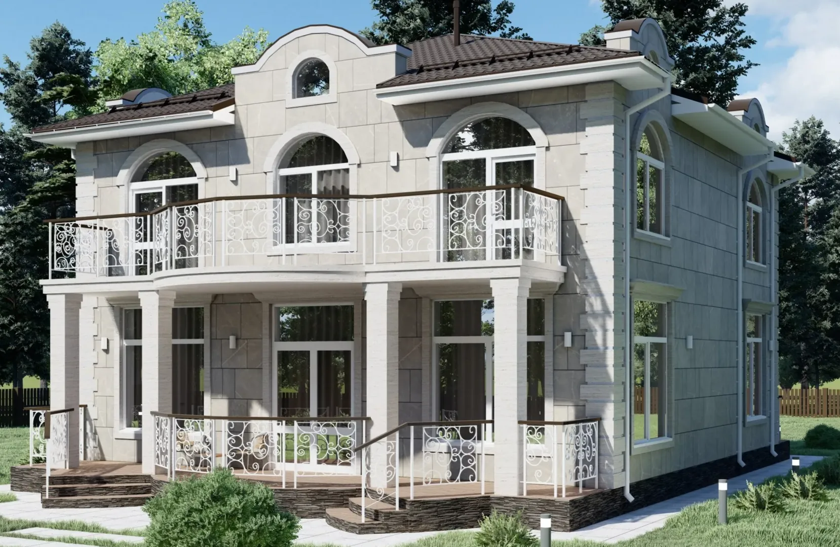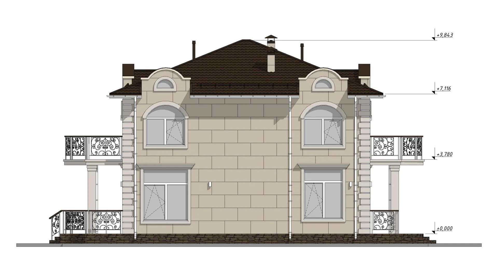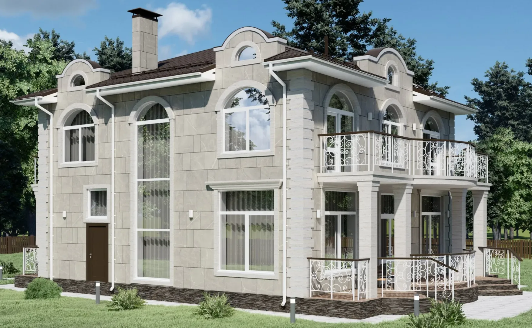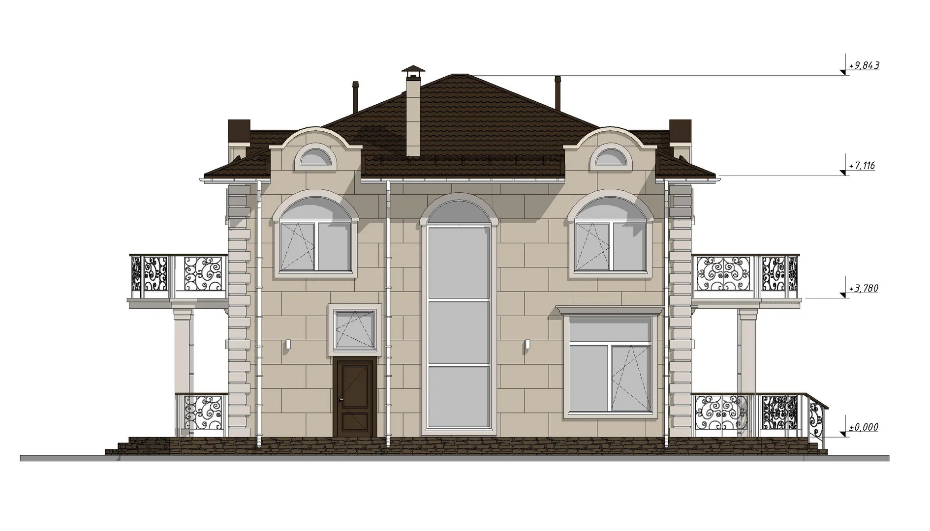 Красивый двухэтажный дом с большими балконами S-240