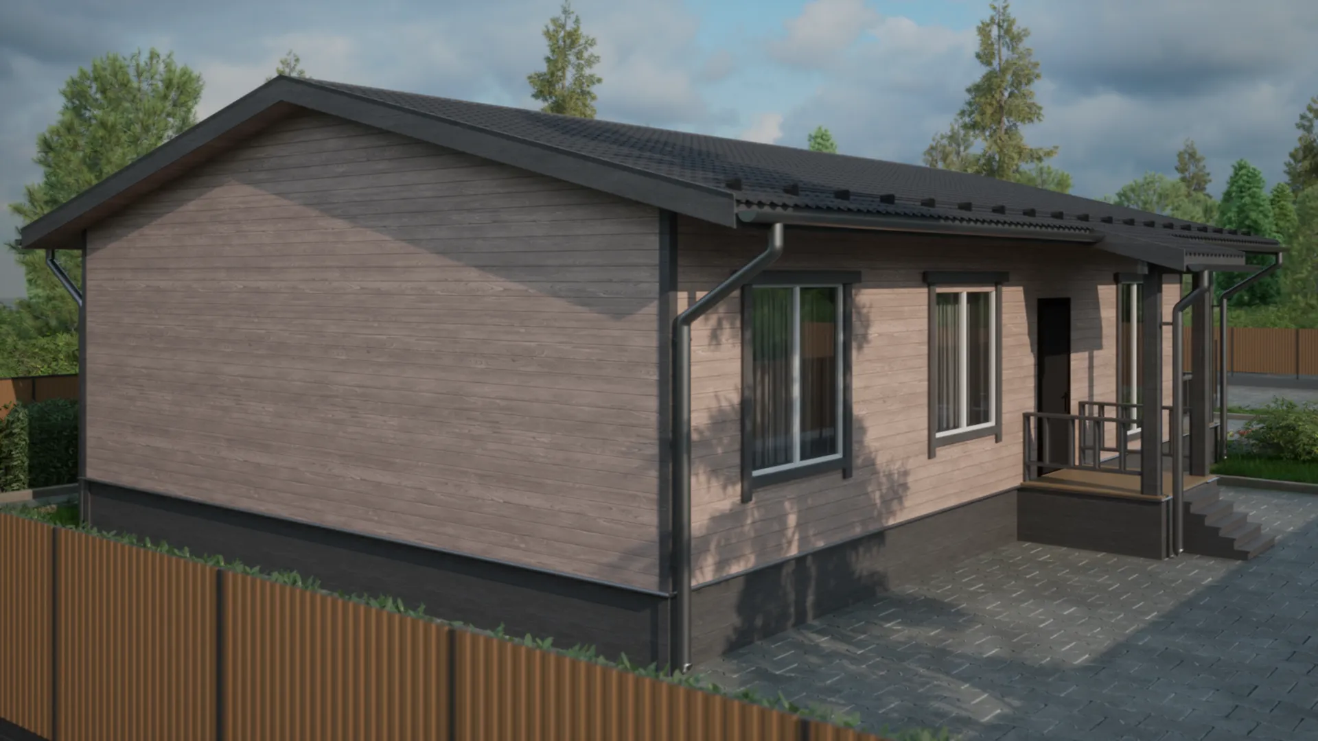 Откройте дверь в «Лесную сказку» – уютный уголок, где каждая деталь пронизана теплом северных ветров и мягким светом деревянных стен. Это идеальное место для тех, кто ценит гармонию с природой, но не хочет отказываться от комфортного, круглогодичного проживания. Внутренний интерьер выполнен в американском/канадском стиле: открытые пространства, большие окна, которые впитывают золотые отблески заката, и эко‑материалы, создающие ощущение дома, как будто погружения в сказочный лес. Уникальность этого одноэтажного дома – его просторная 126‑м² терраса, где можно наслаждаться свежим лесным воздухом, наблюдать за дикой природой, устроить романтический обед под звёздами или просто отдохнуть после долгих прогулок. Стройка выполнена в классическом двускатном виде, с деревянным каркасом, что придаёт зданию душу и долговечность, а легкая конструкция обеспечивает теплоизоляцию и акустическую защиту от шума городского мегаполиса. «Лесная сказка» – это ваш личный уголок роскоши и спокойствия, где каждый день начинается и заканчивается в объятиях природы.