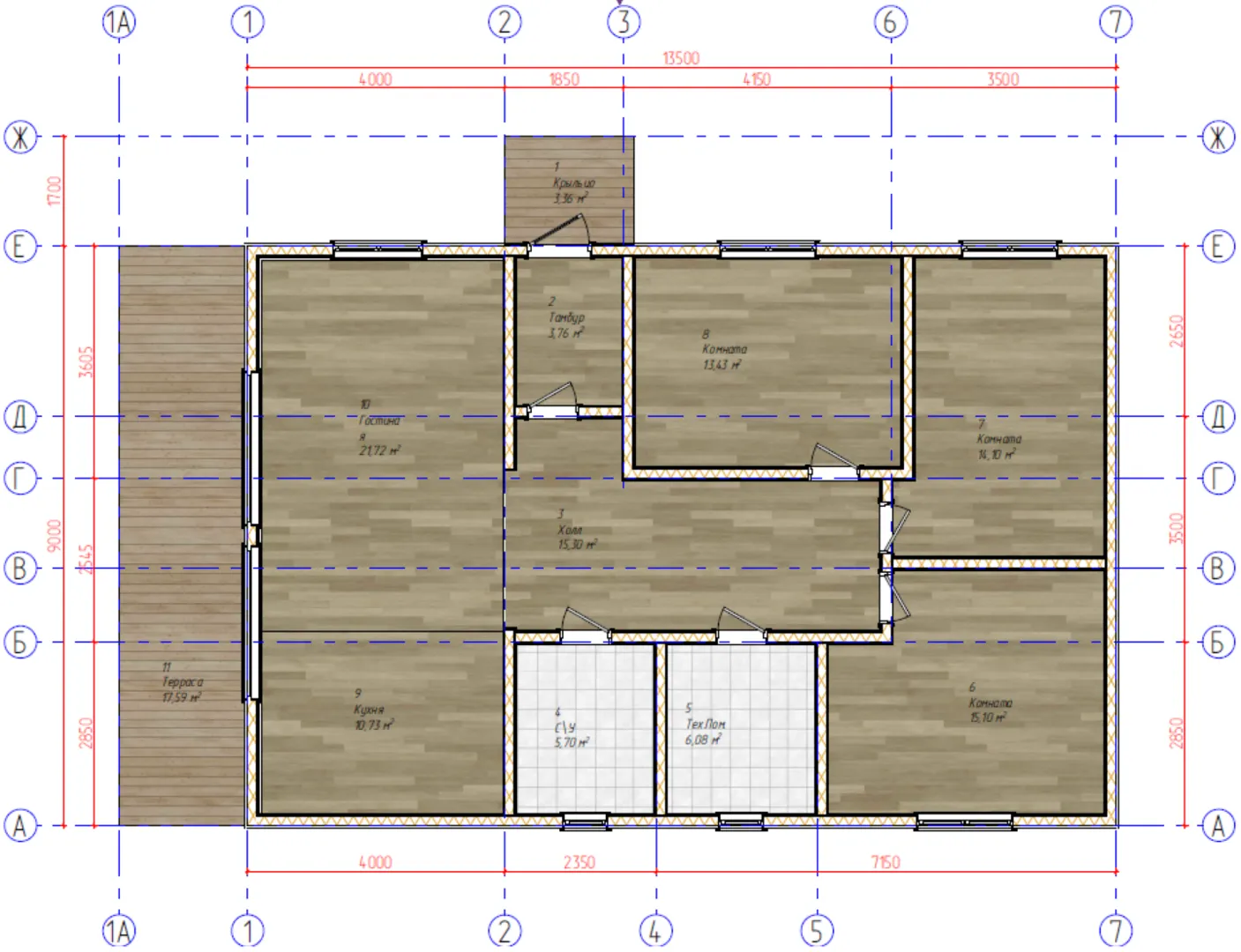 Одноэтажный каркасный дом ТПК-135