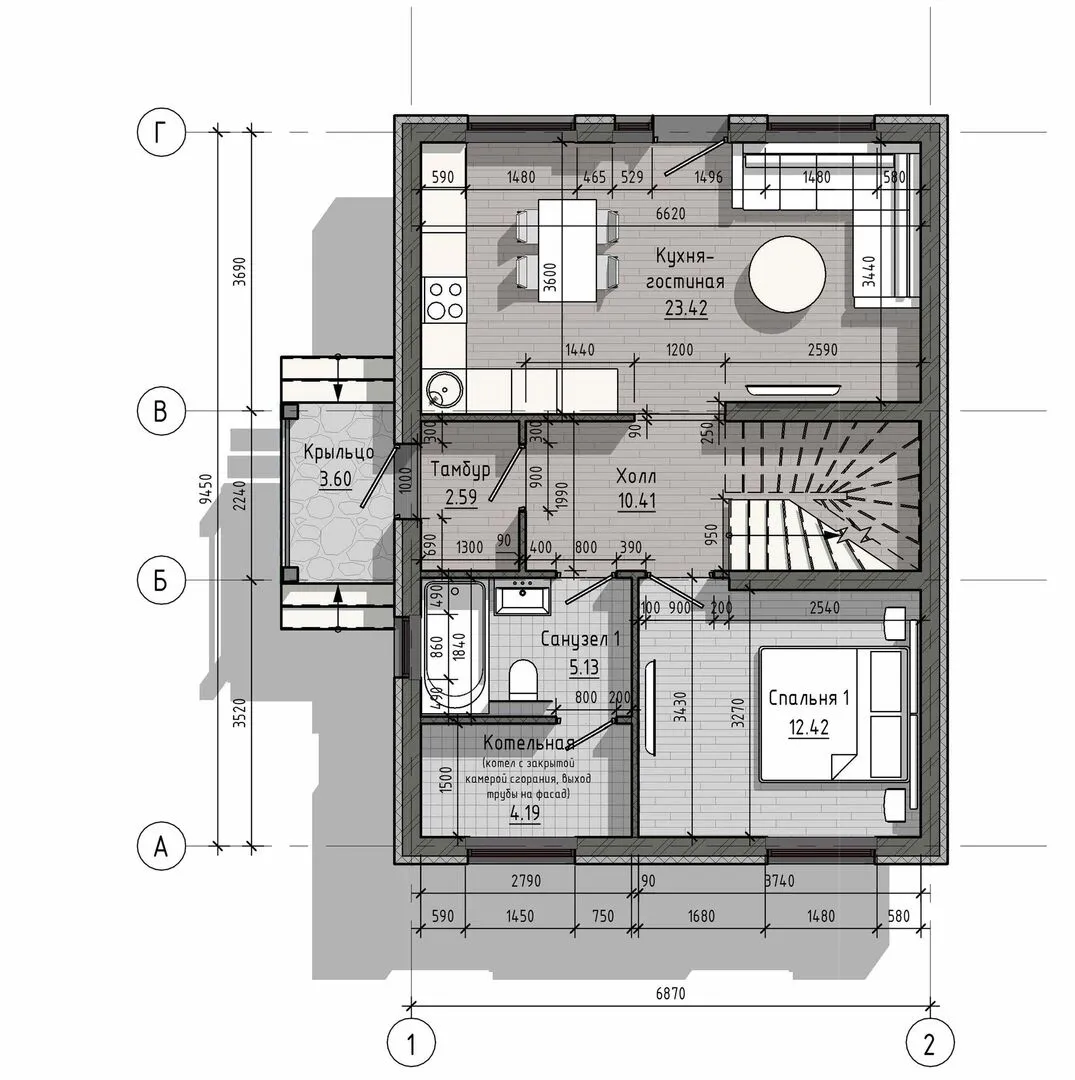 Одноэтажный дом по проекту № 9
