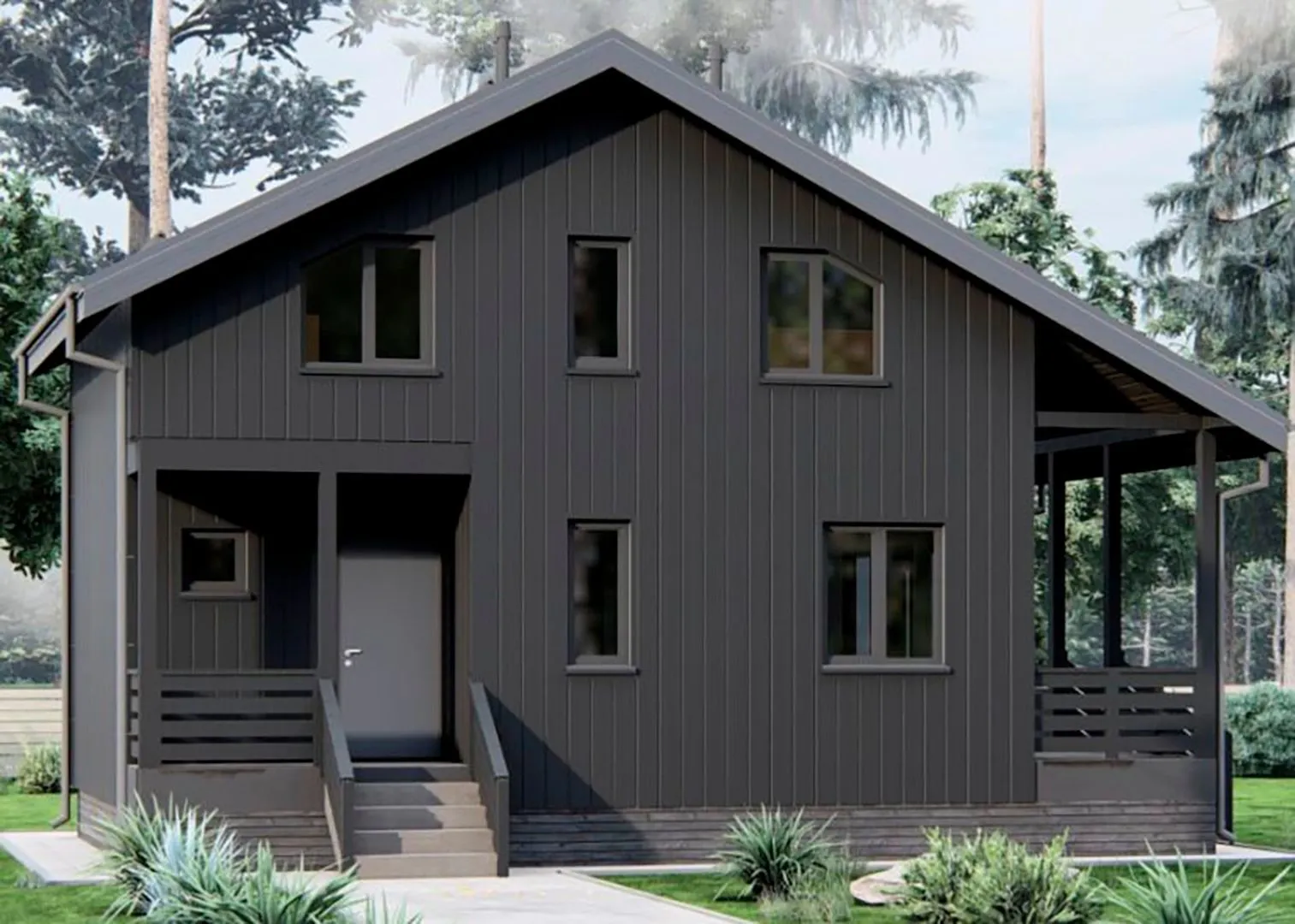 Мансардный загородный дом с террасой "СИП-103"