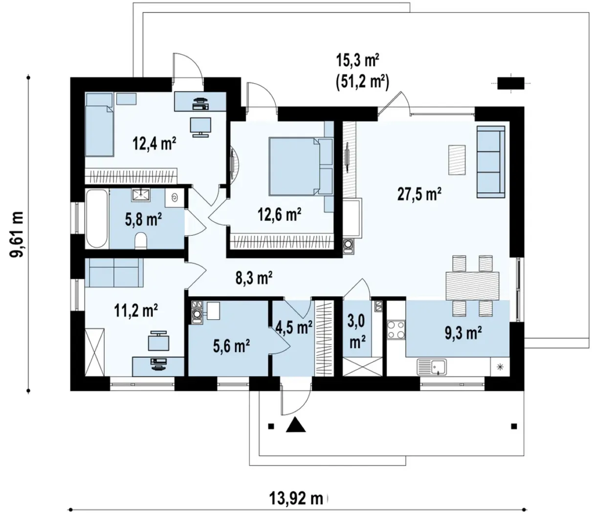 Небольшой одноуровневый частный дом S3-100 (Z191)