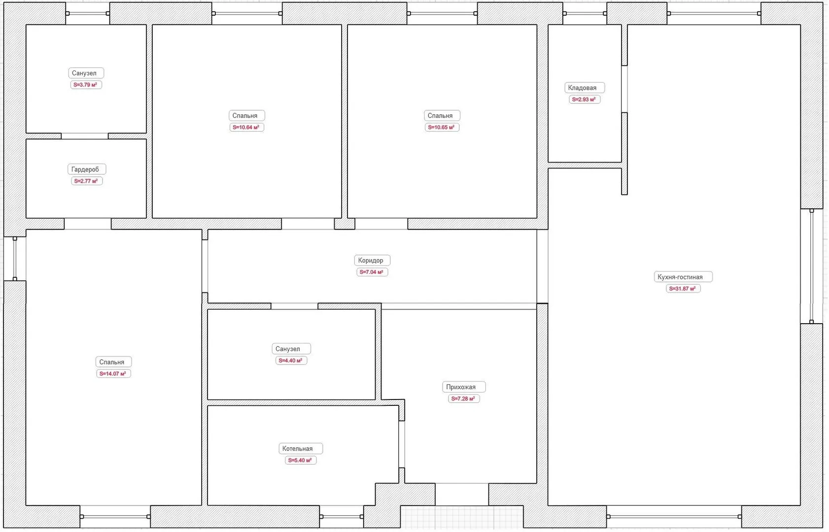 Толщина внешних стен