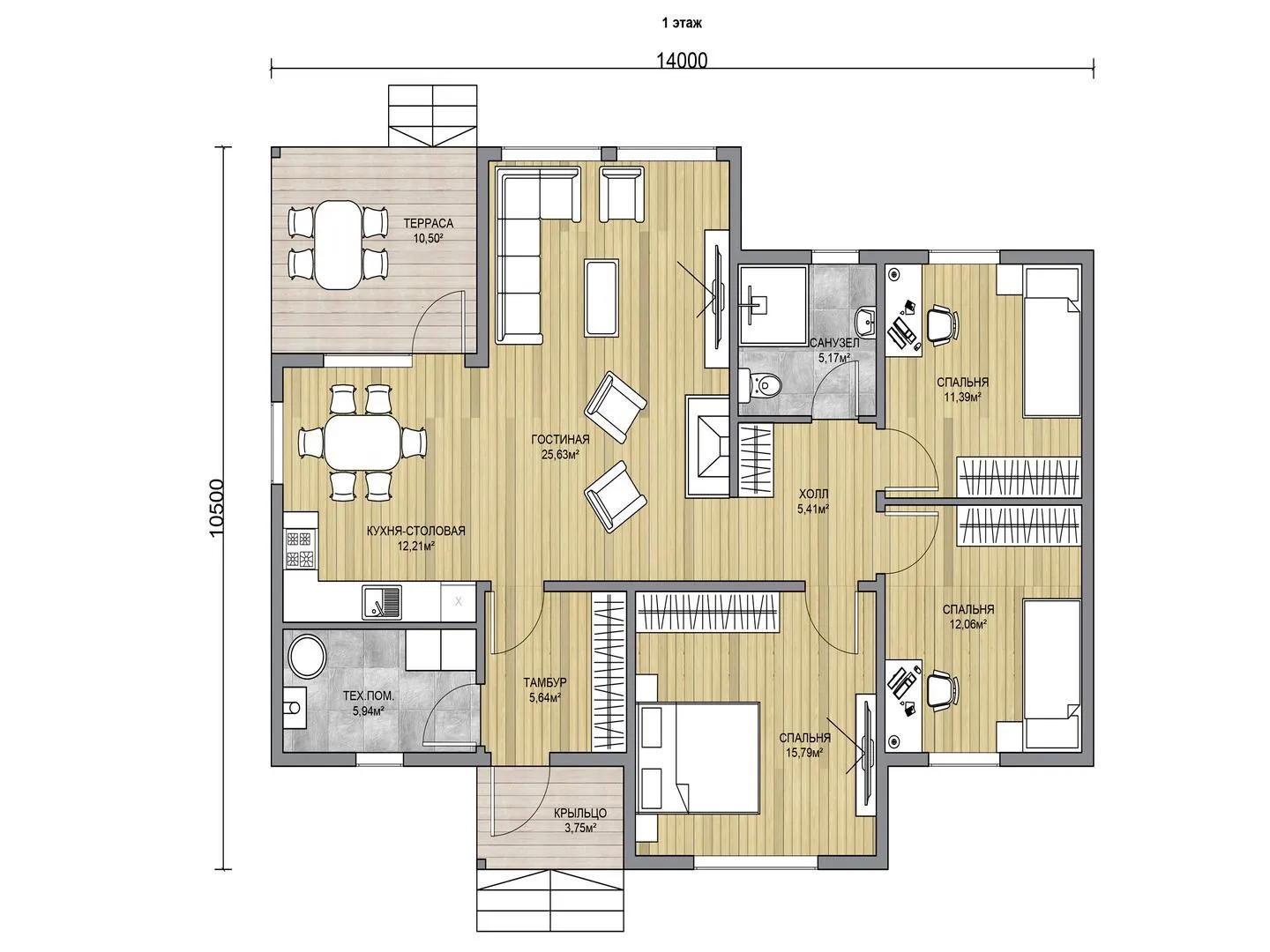 Одноэтажная дача КОМФОРТ 115М2