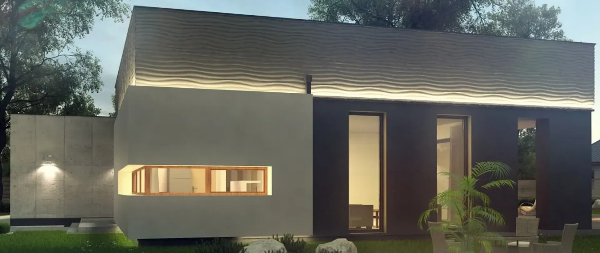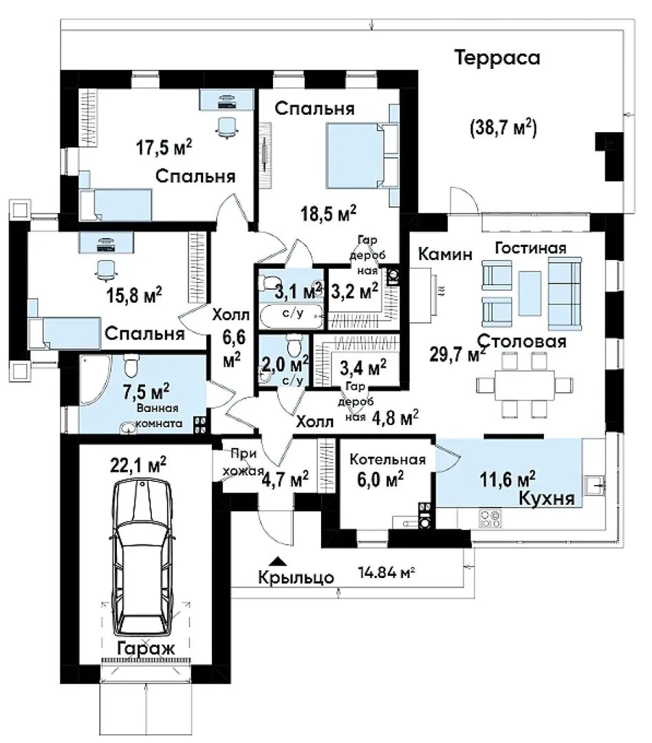 Одноэтажного дома в стиле хай-тек с гаражом s3-152-2 (Zx56)