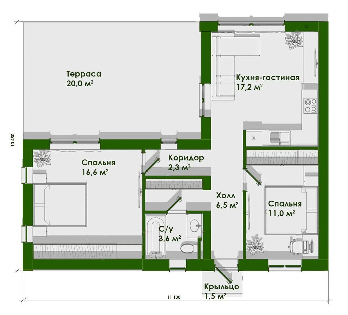 Заказать конусльтацию по:Одноэтажный Барнхаус с террасой