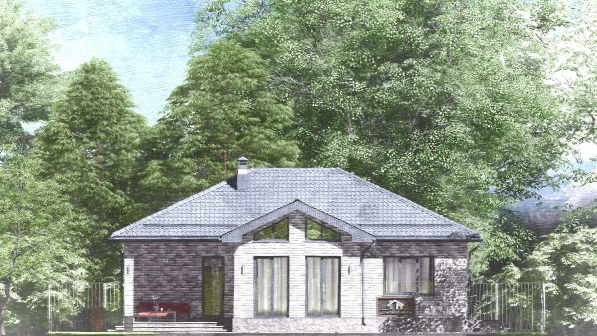 Заказать конусльтацию по:Одноэтажный дом "AURA"