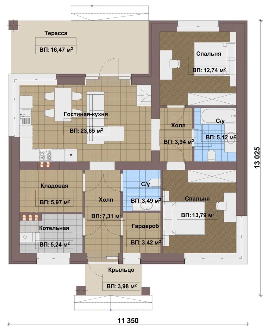 Заказать конусльтацию по:Одноэтажный дом FIXPLANS - 2132