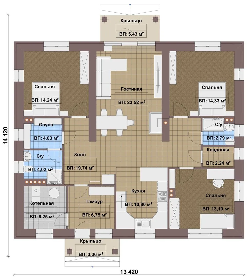 Заказать конусльтацию по:Одноэтажный дом FIXPLANS - 2330