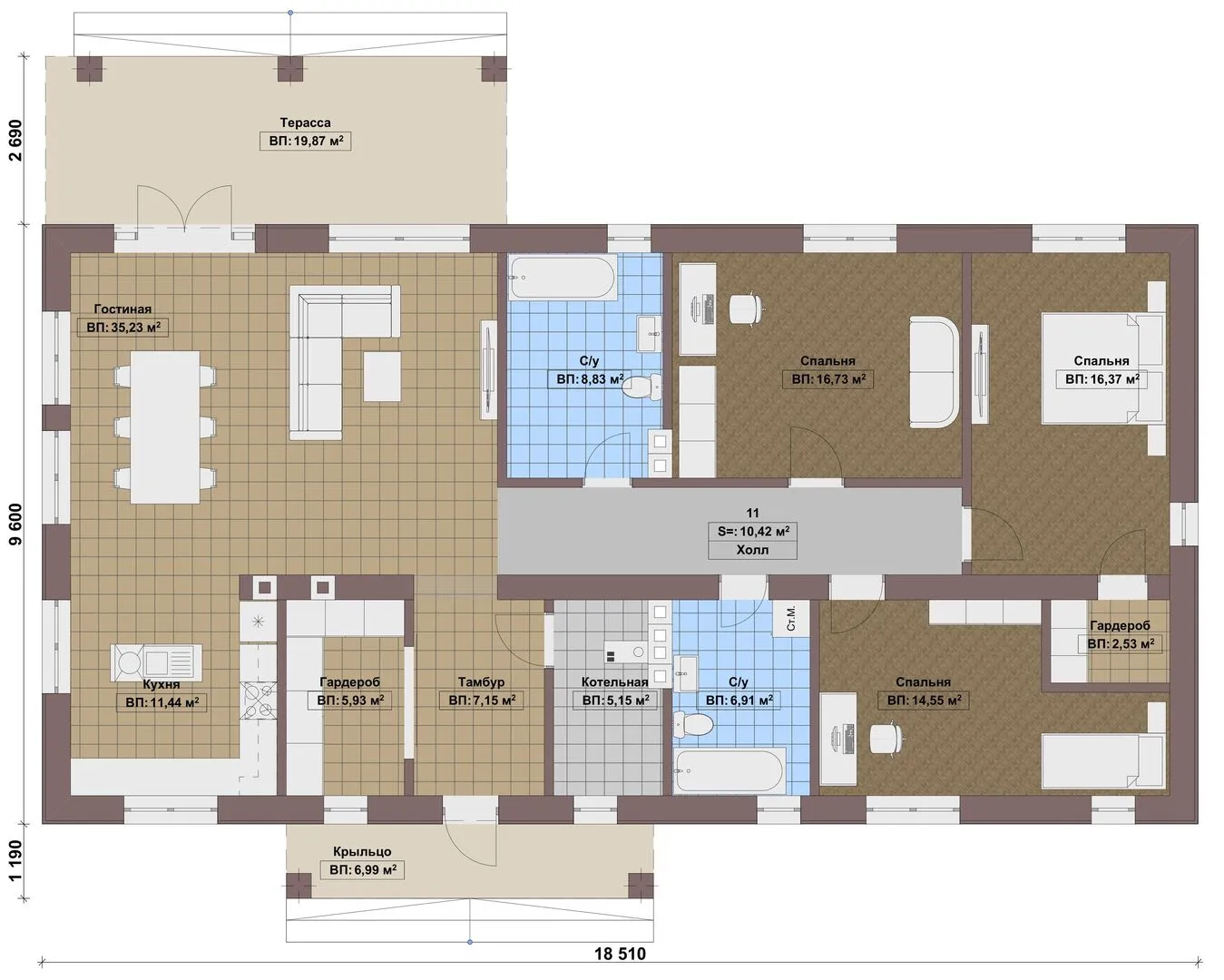 Одноэтажный дом Fixplans-7982