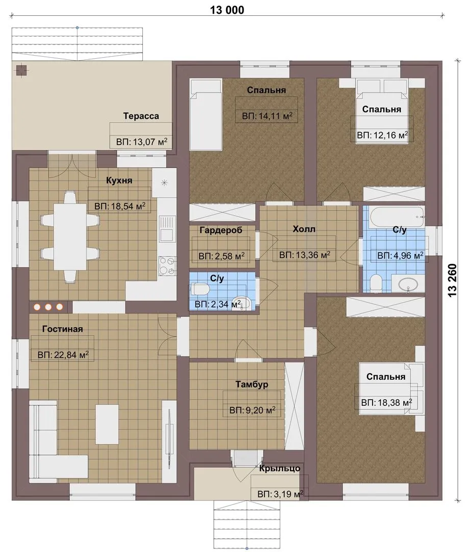 Одноэтажный дом FIXPLANS- 2654