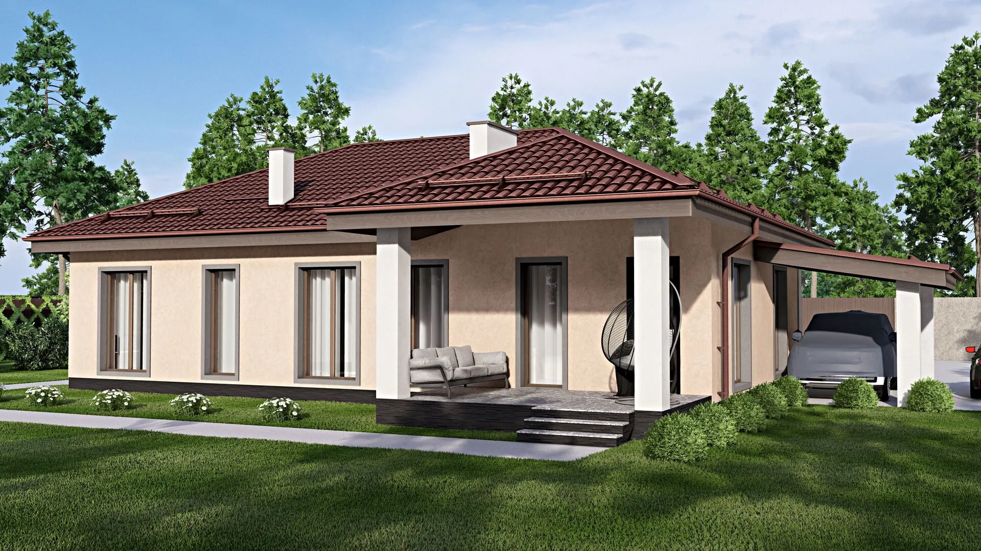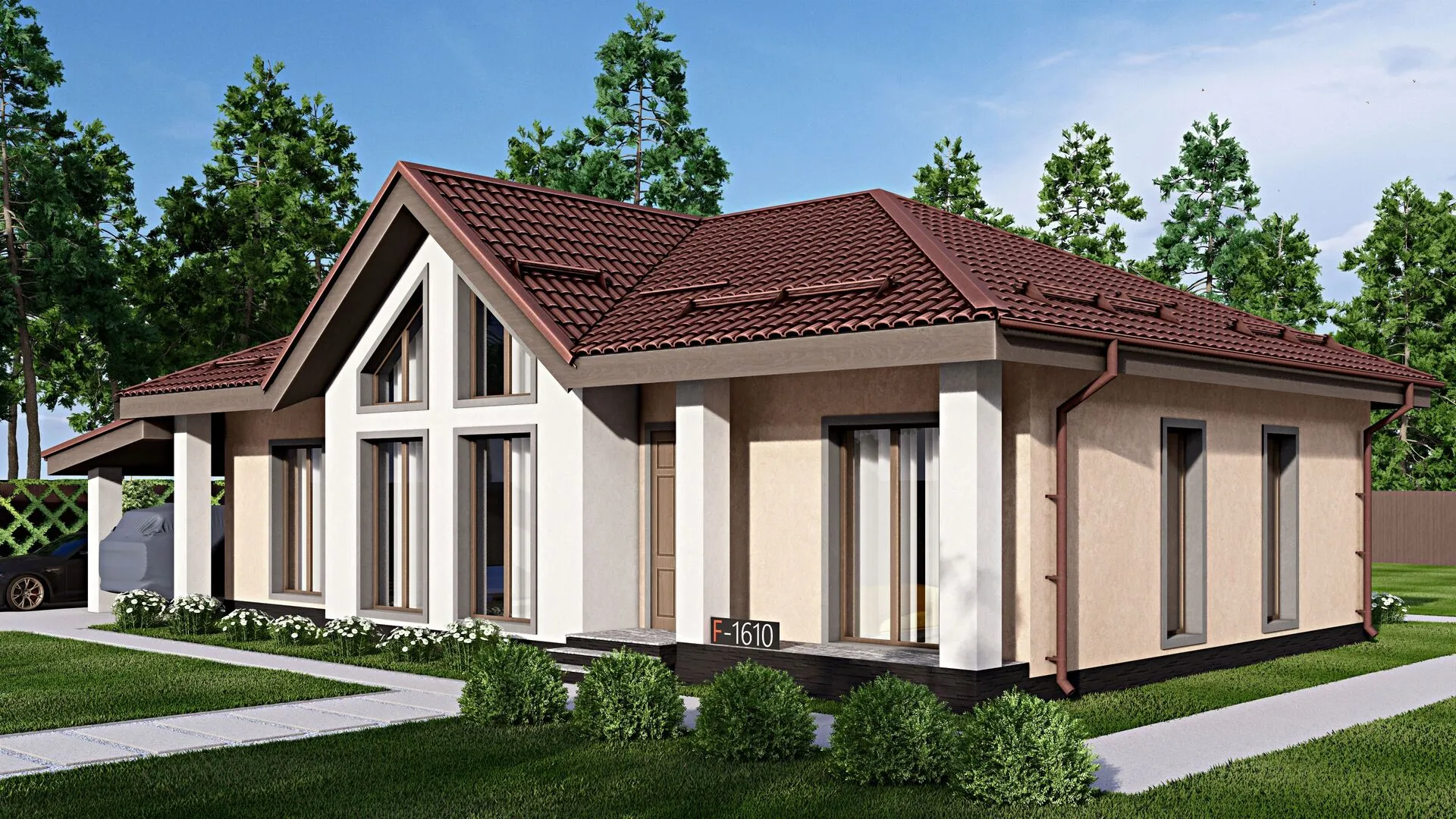 Заказать конусльтацию по:Одноэтажный дом FIXPLANS - 1610